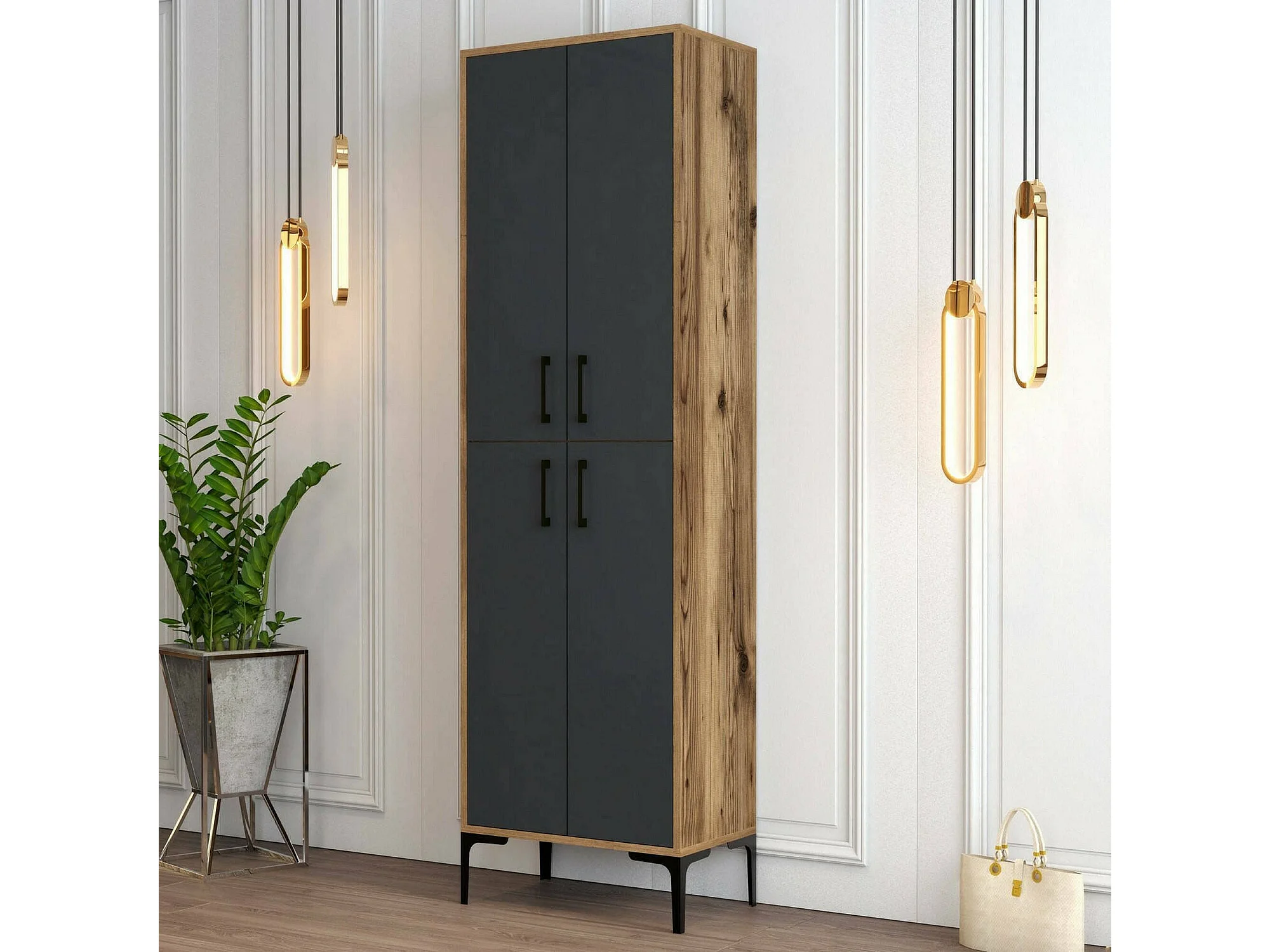 Meuble à chaussures Mimosa, Meuble à chaussures, Armoire d'entrée polyvalente, Rangement pour chaussures, 60x35h200 cm, Noyer et Anthracite