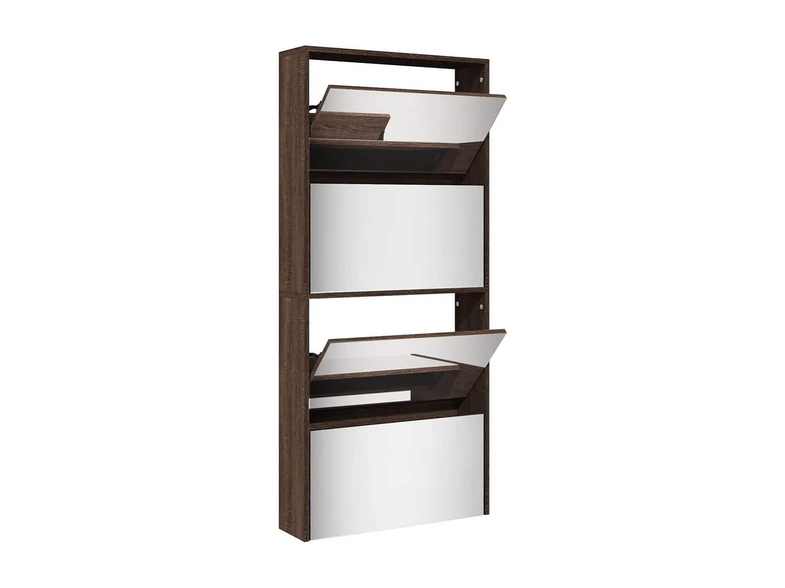 Meuble à chaussures miroir 4 niveaux chêne marron 63x17x134 cm FR74631
