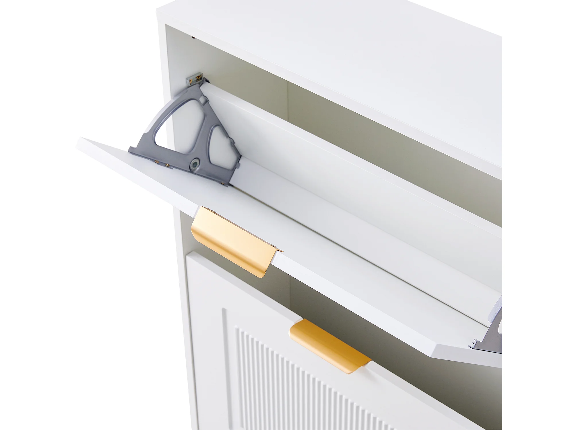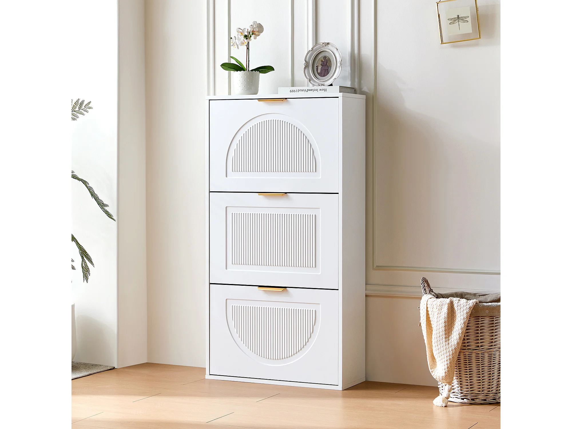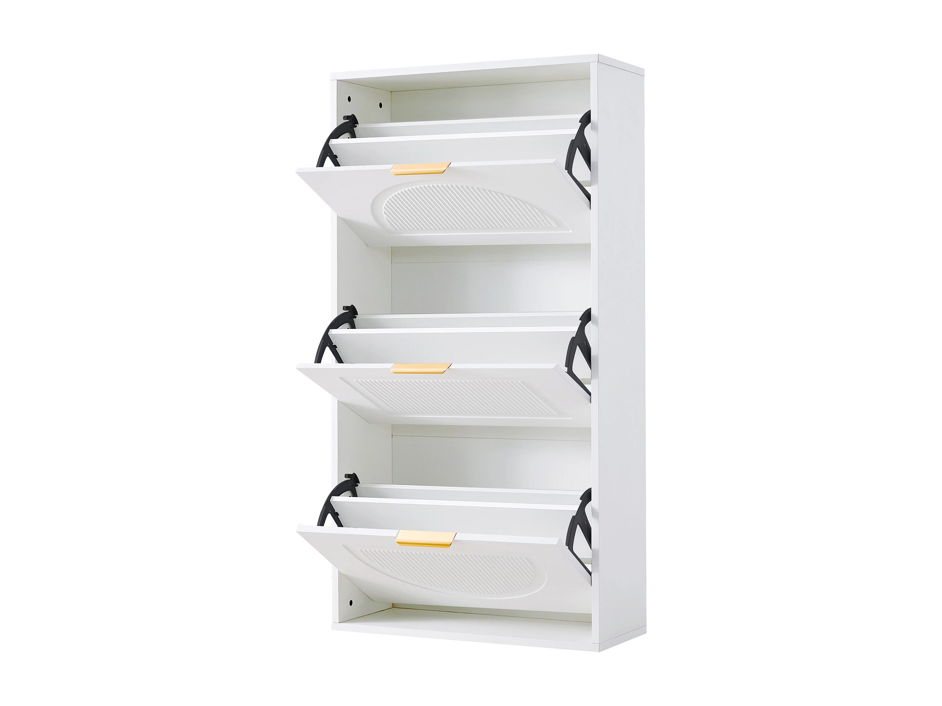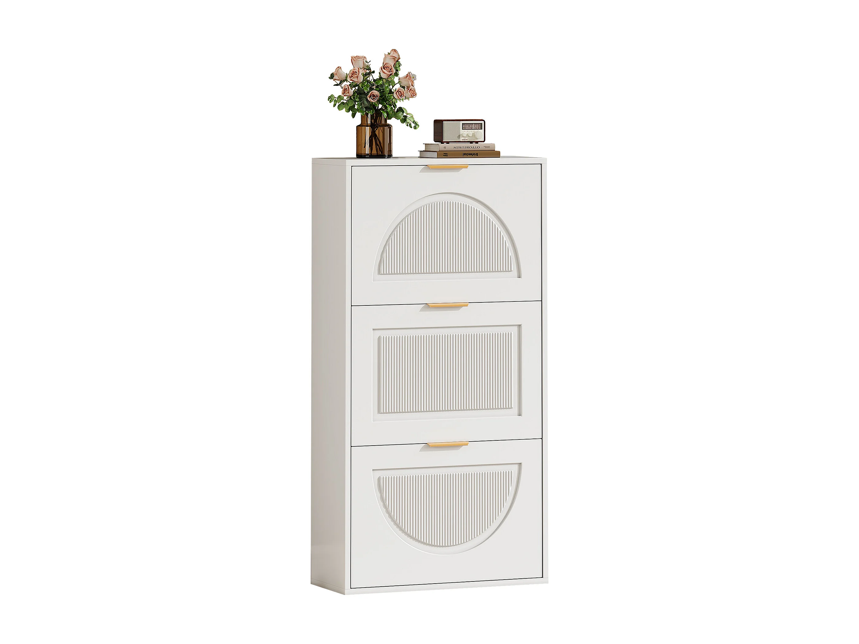 Meuble à chaussures moderne 60x24x114cm - 3 portes abattants - Blanc
