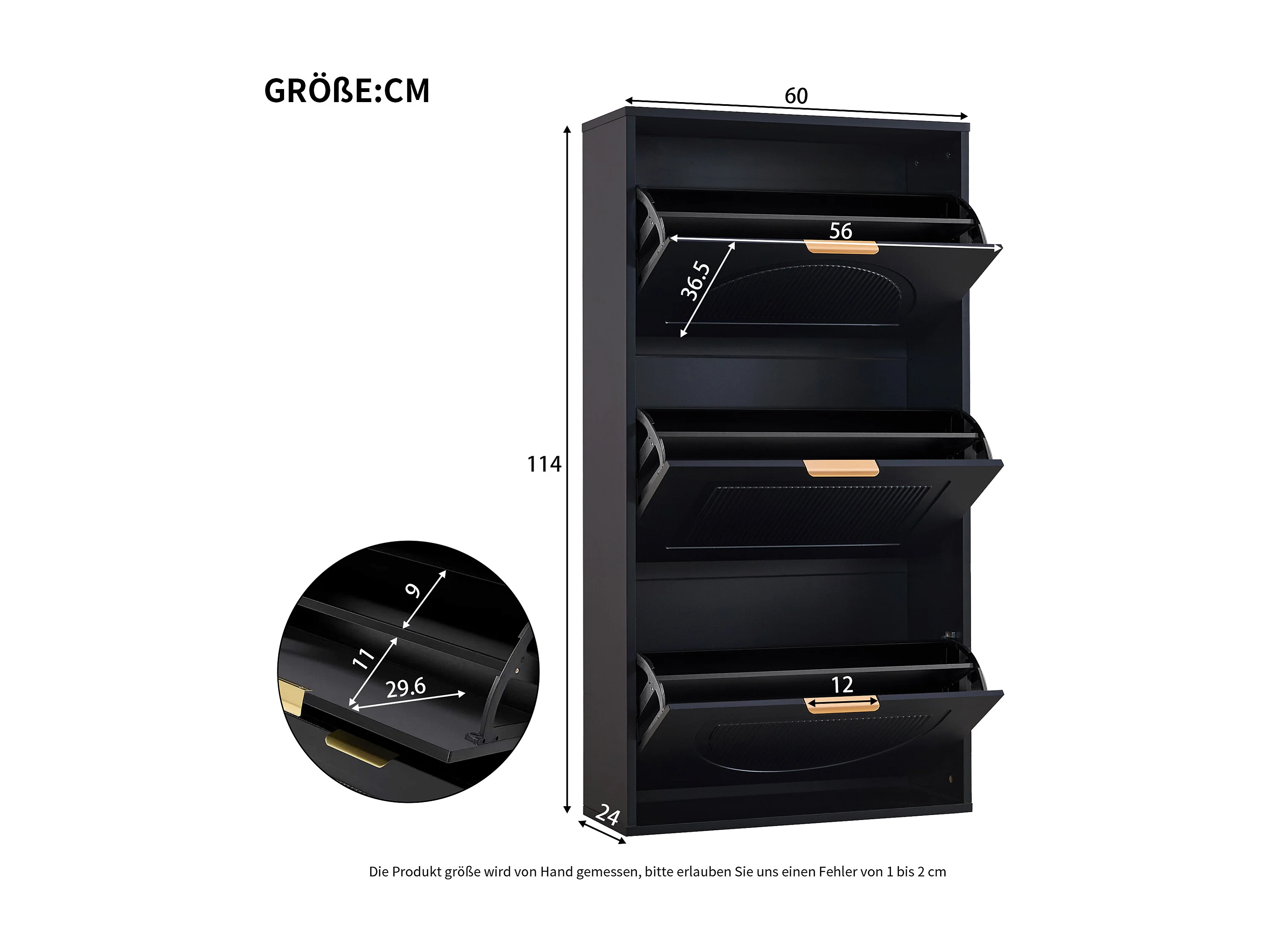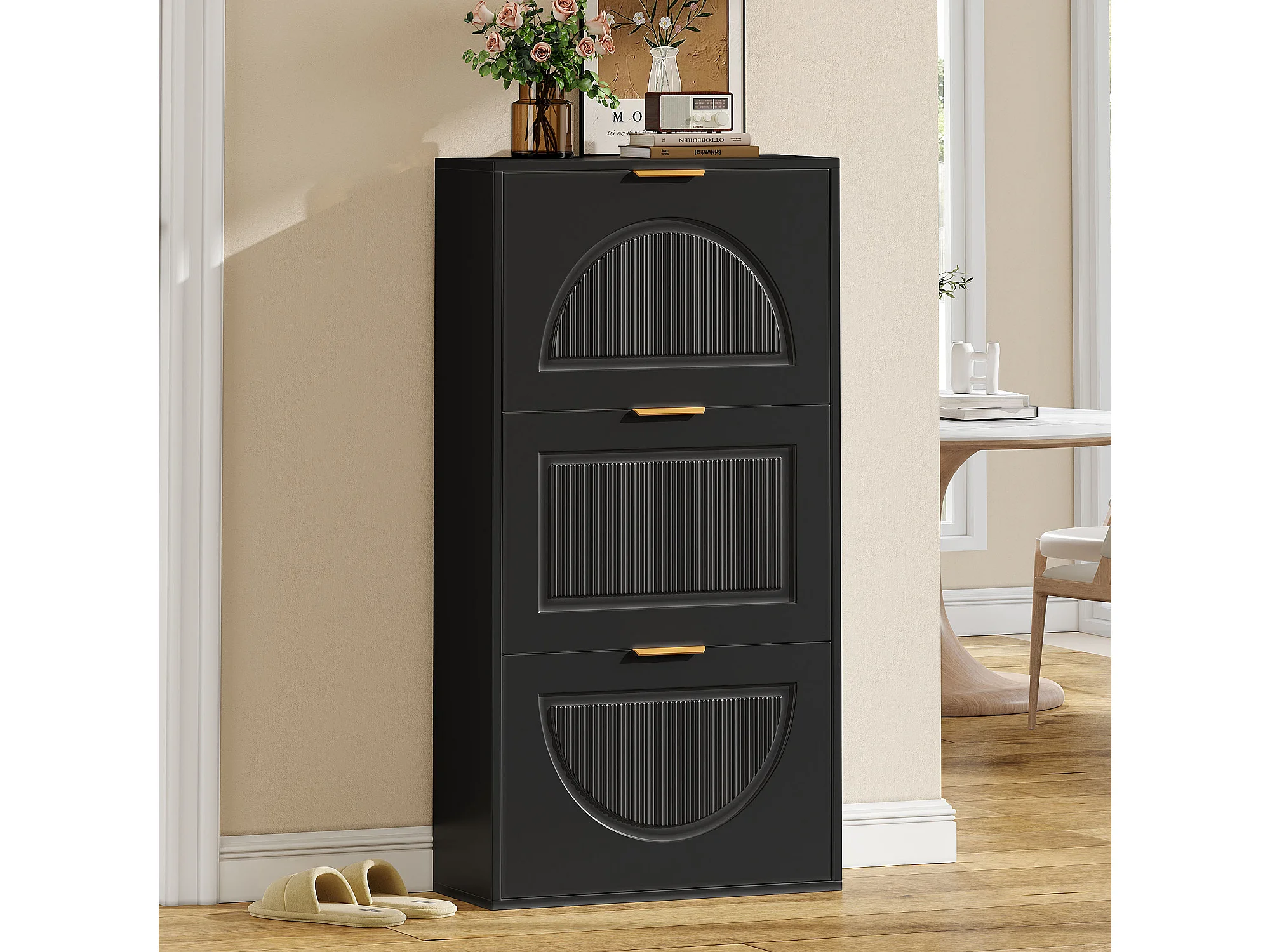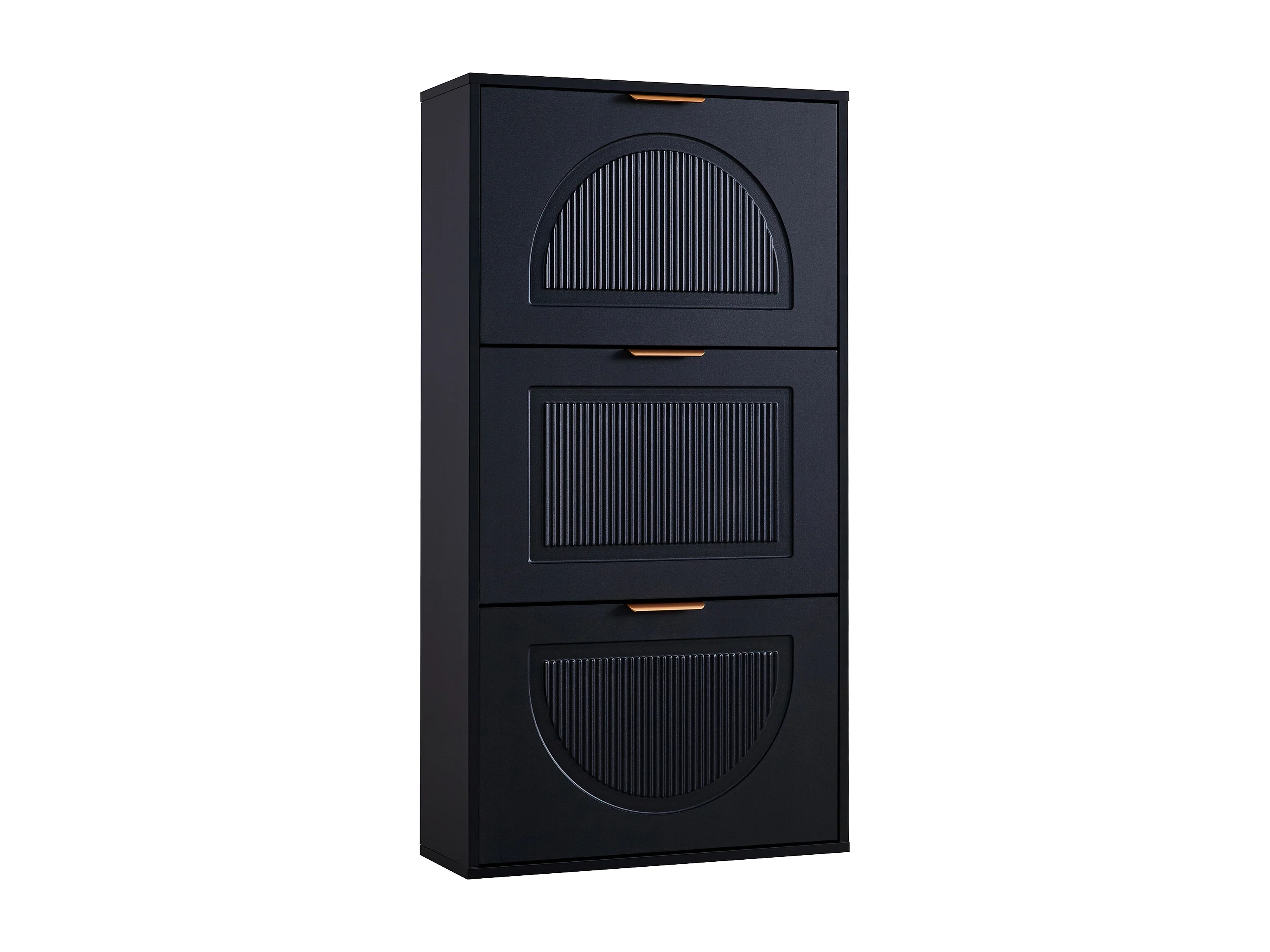 Meuble à chaussures moderne 60x24x114cm - 3 portes abattants - Noir