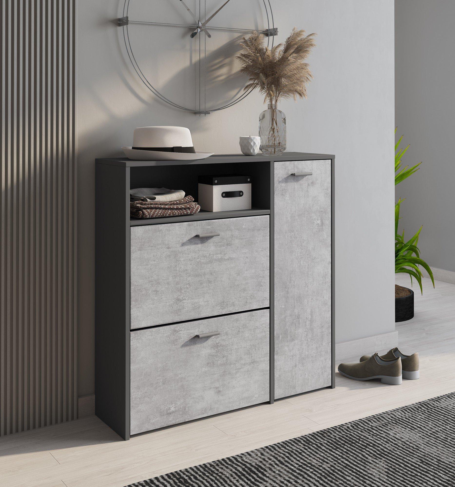 Meuble à chaussures Dpinn, Étagère à chaussures peu encombrante, Étagère à chaussures d'entrée, Meuble avec 3 portes pliantes, 92x27h94 cm, Anthracite, Ciment