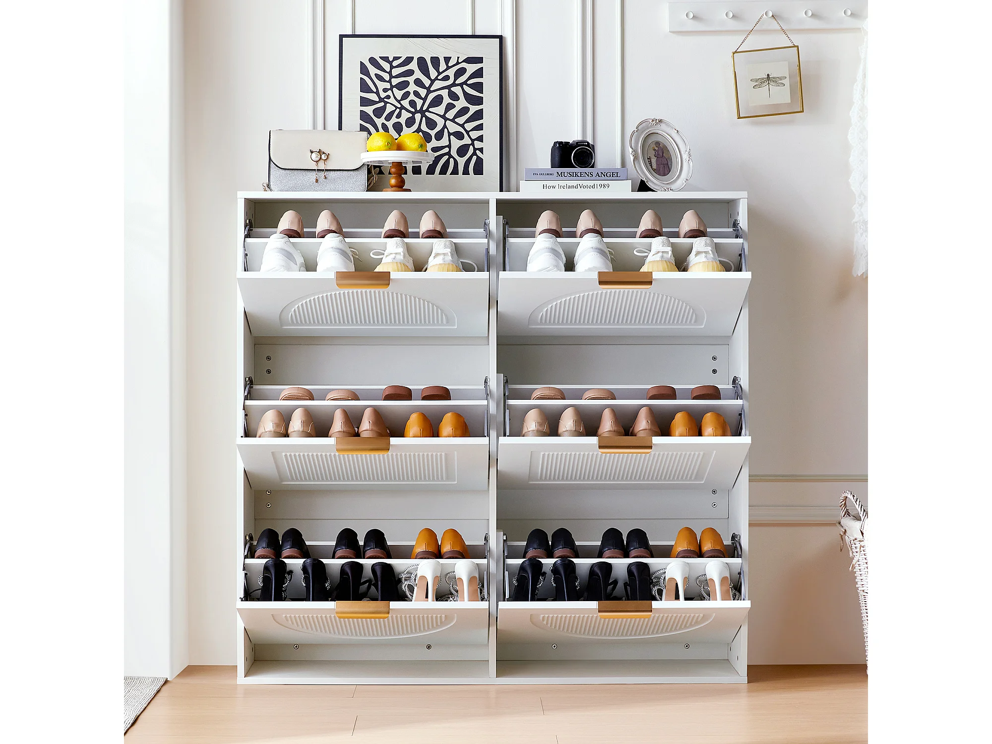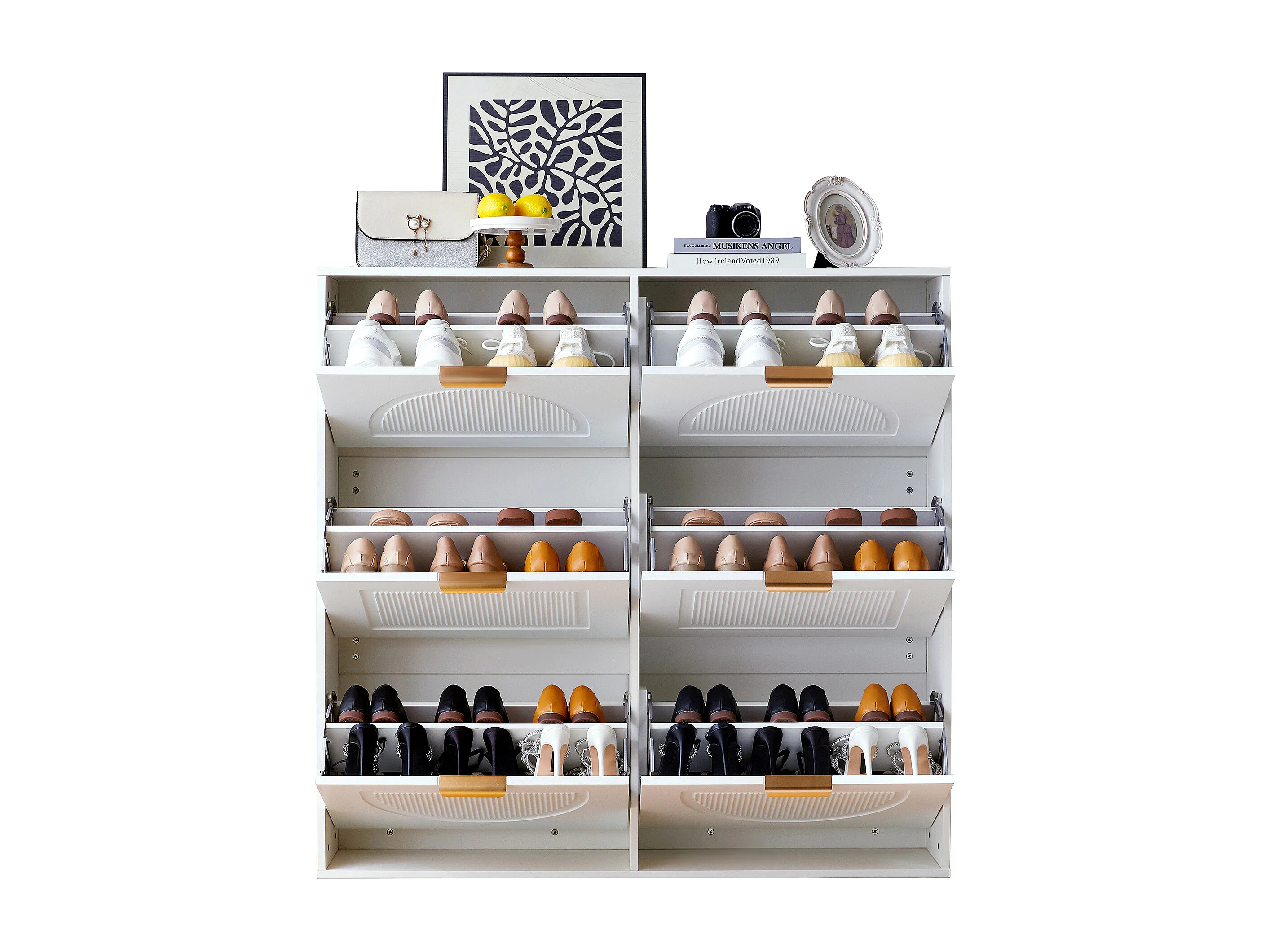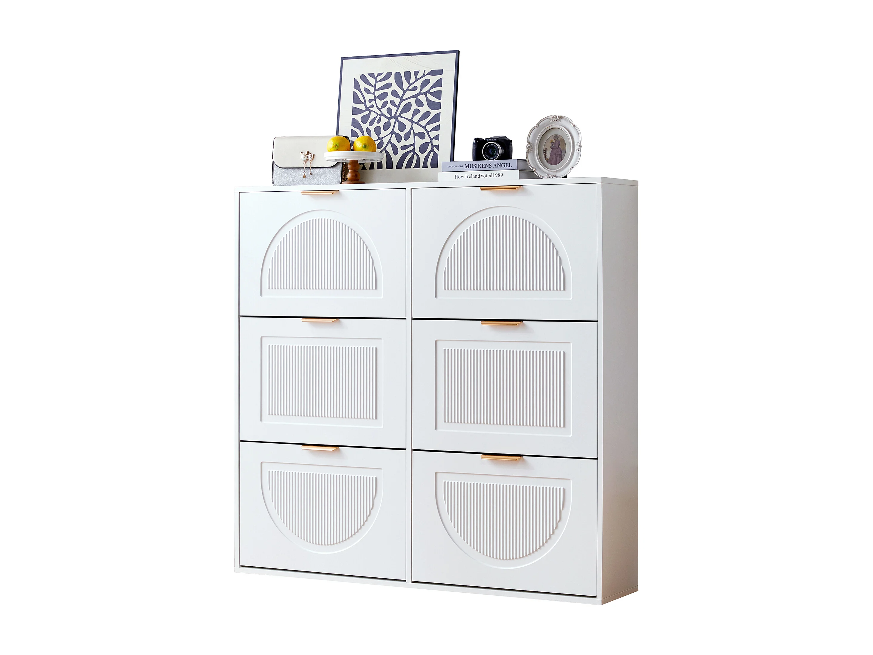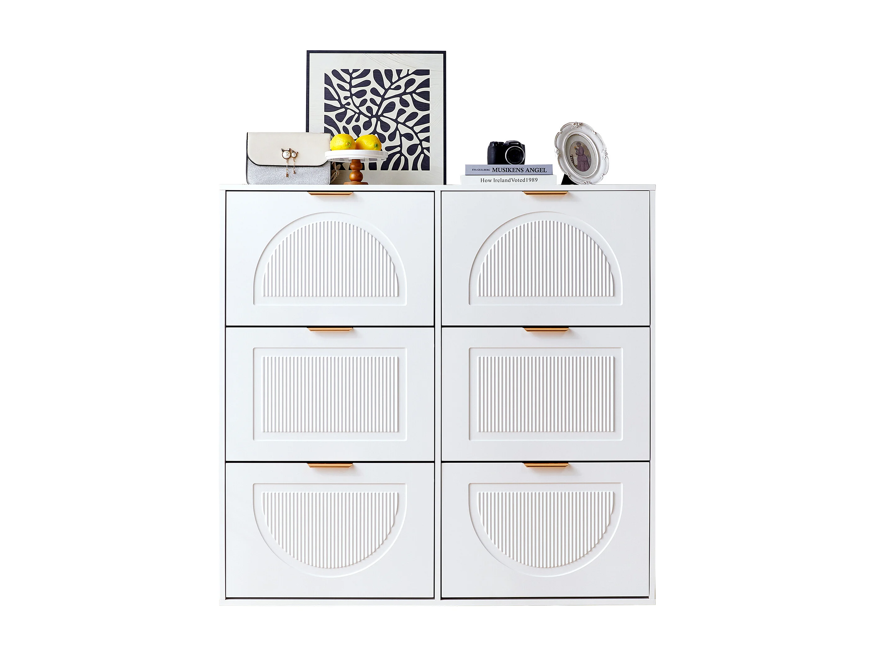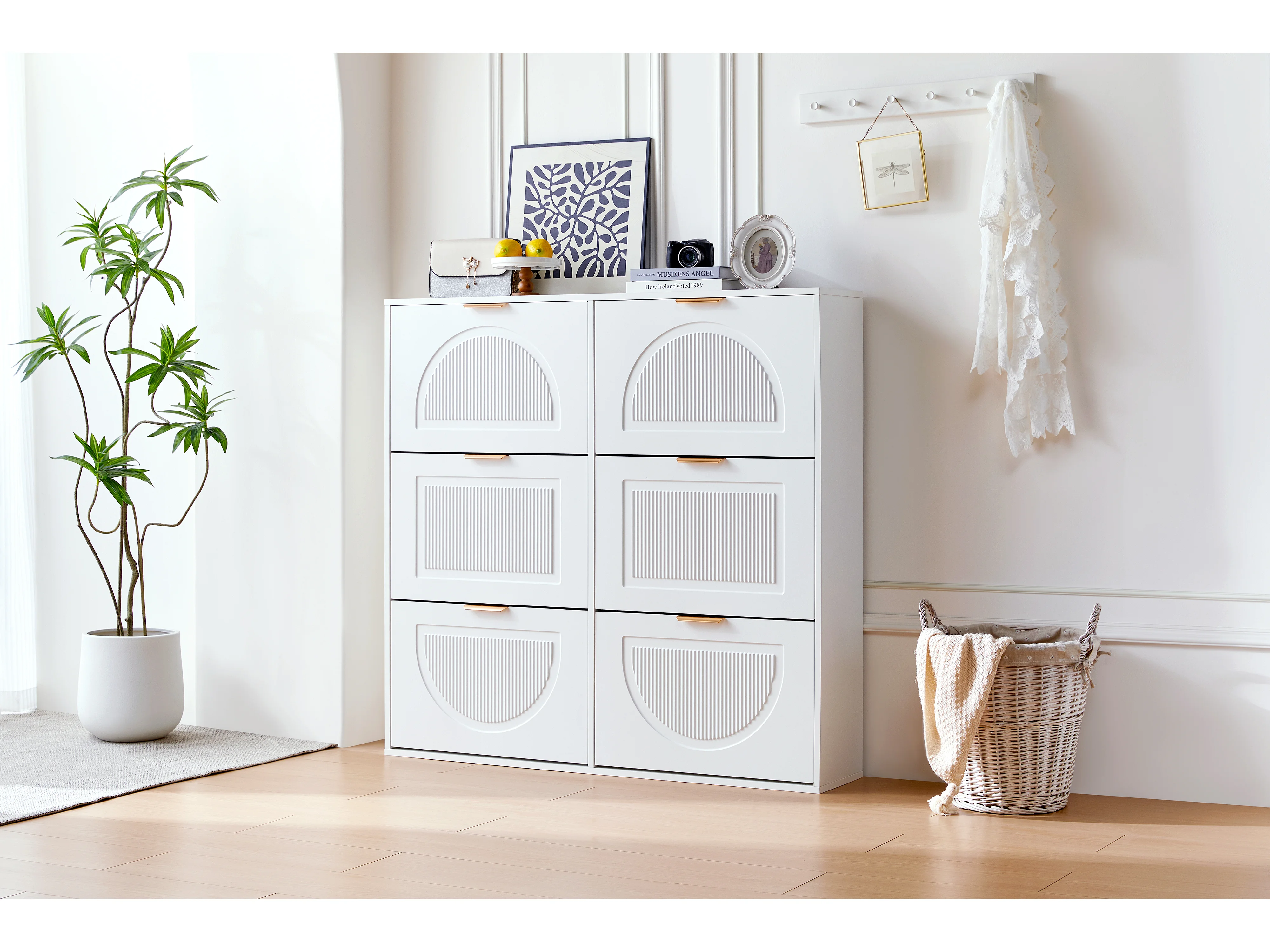 Meuble à chaussures moderne avec 6 compartiments à rabat, étagère indépendante, MDF, blanc (118x25x115 cm)