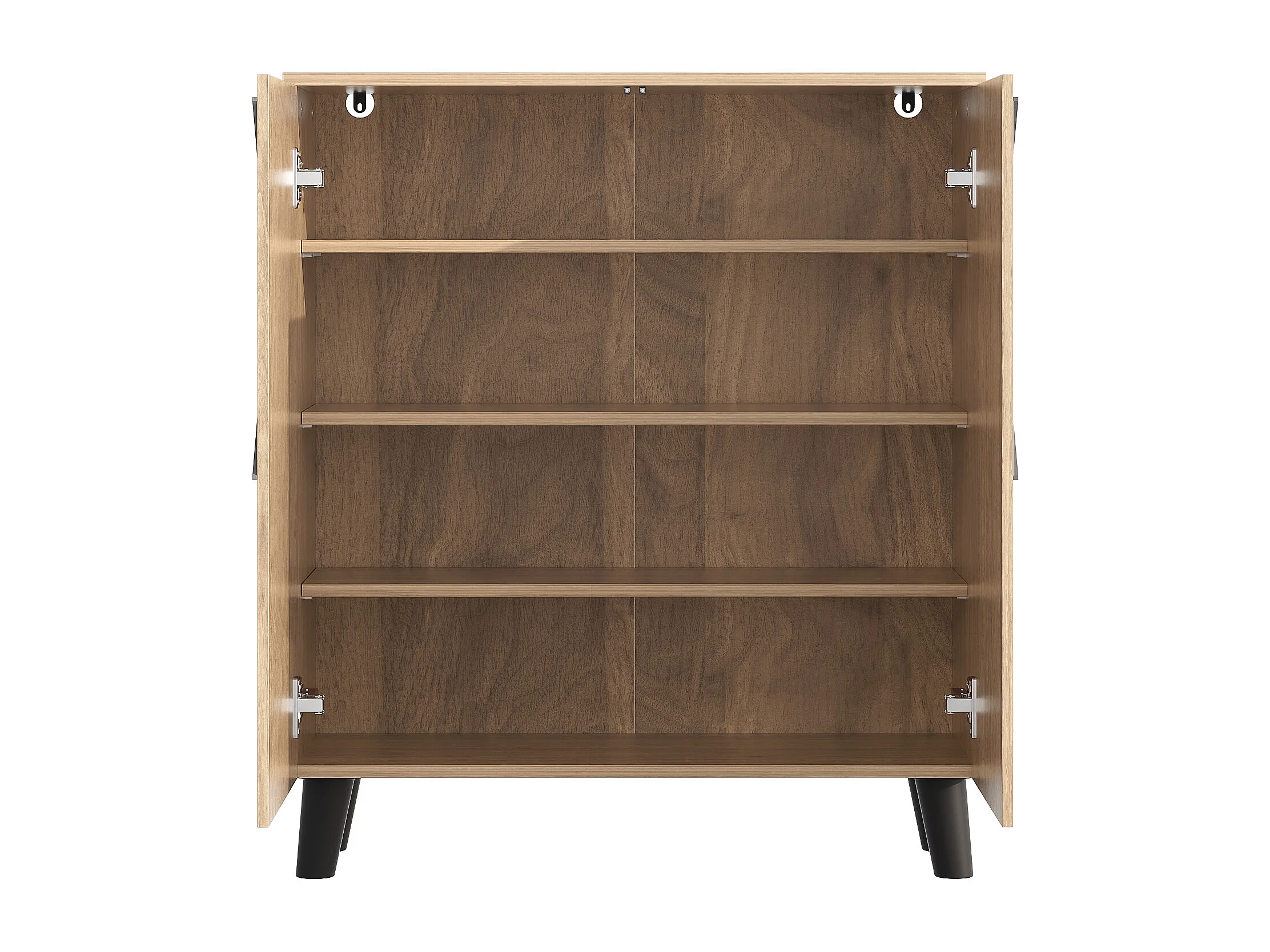 Meuble à chaussures moderne pour l'entrée - 60 x 34.5 x 95 cm - avec 2 porte + étagères réglables - aggloméré - naturel
