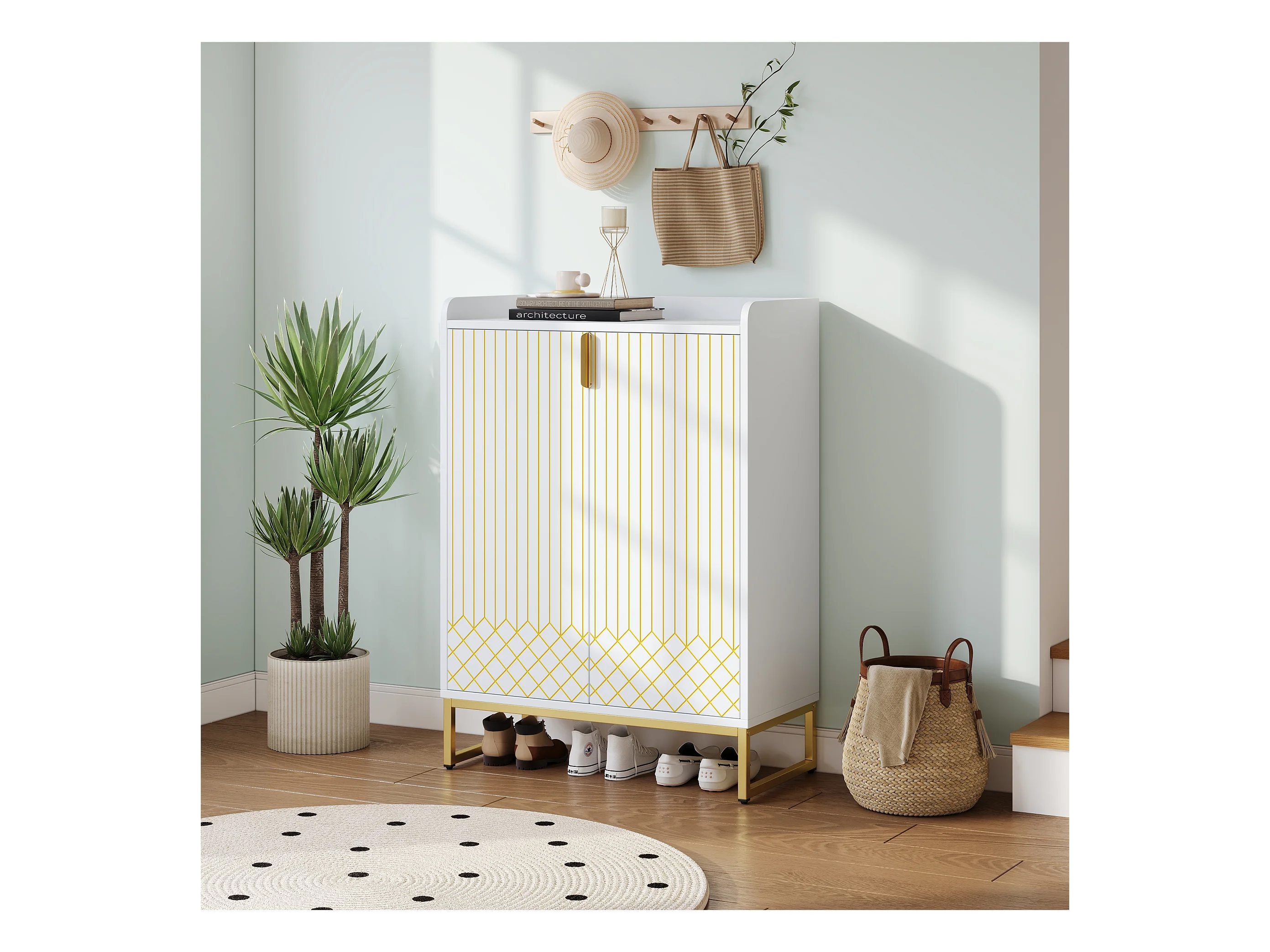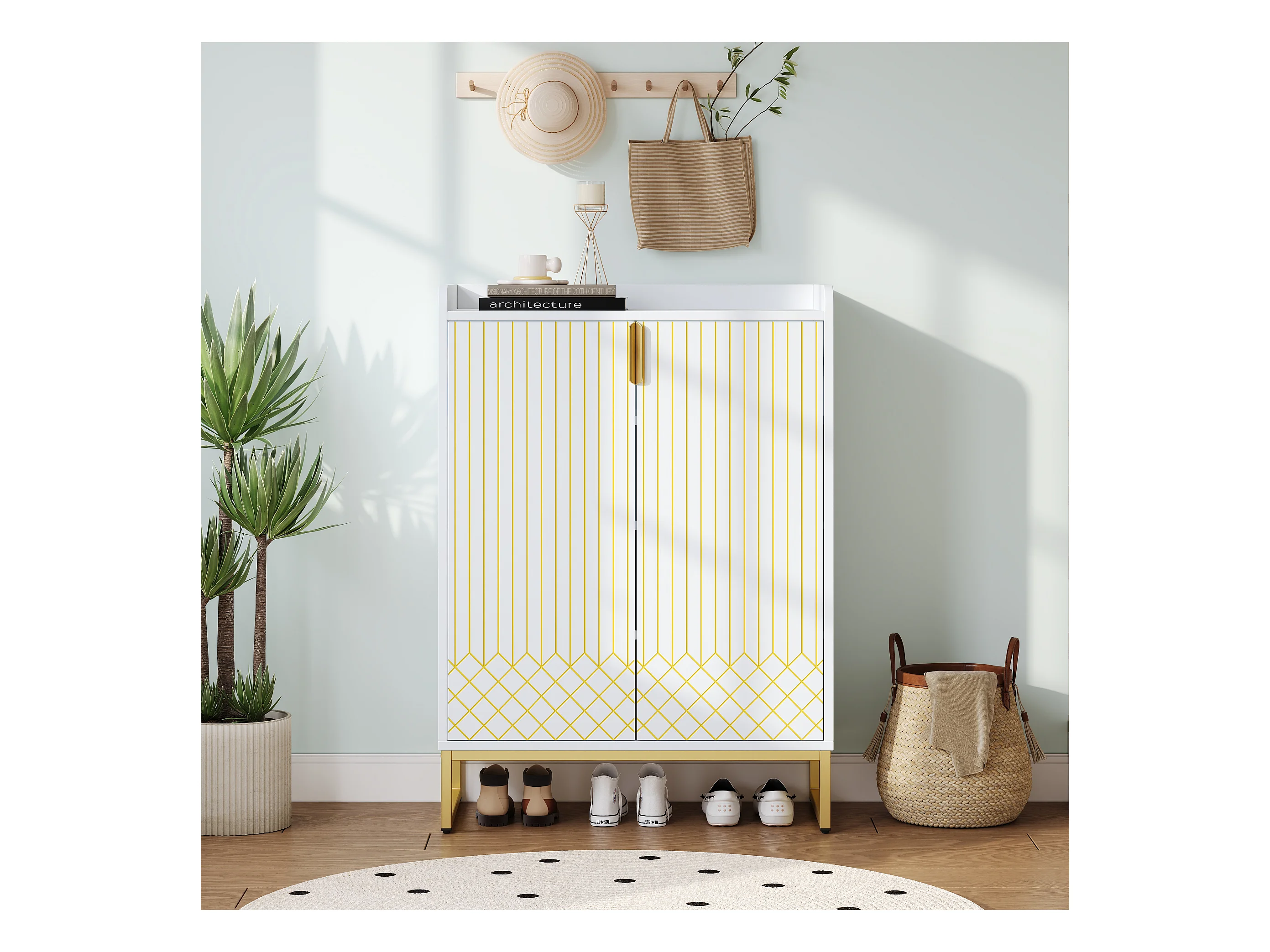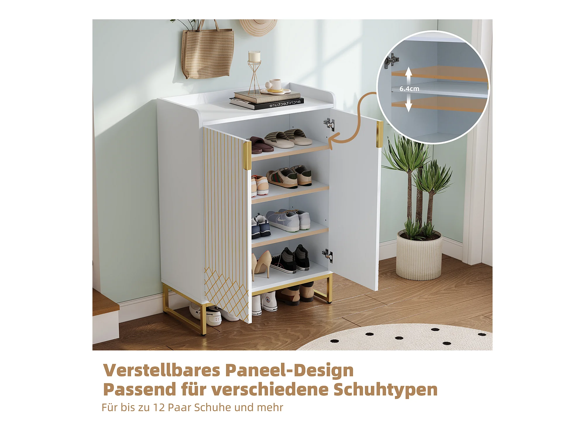 Meuble de rangement pour chaussures moderne, pieds métalliques dorés, MDF, blanc, 75x37x105 cm (x2)