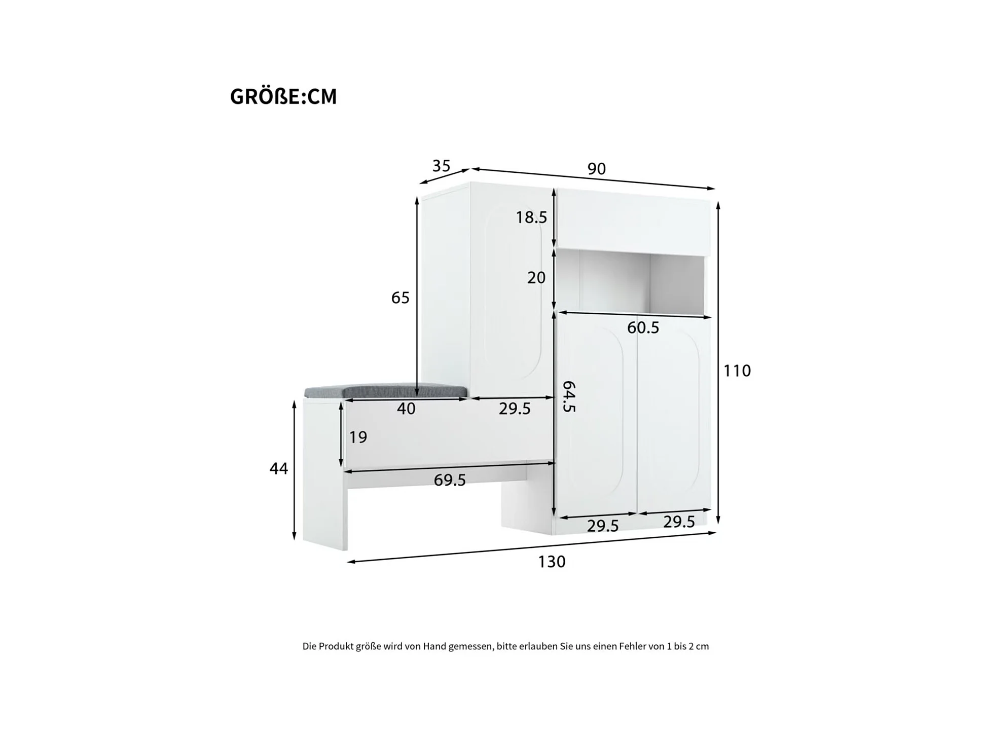 Banc de Rangement avec coussin rembourré et 3 cubes, Banquette confortable, FSR23-W