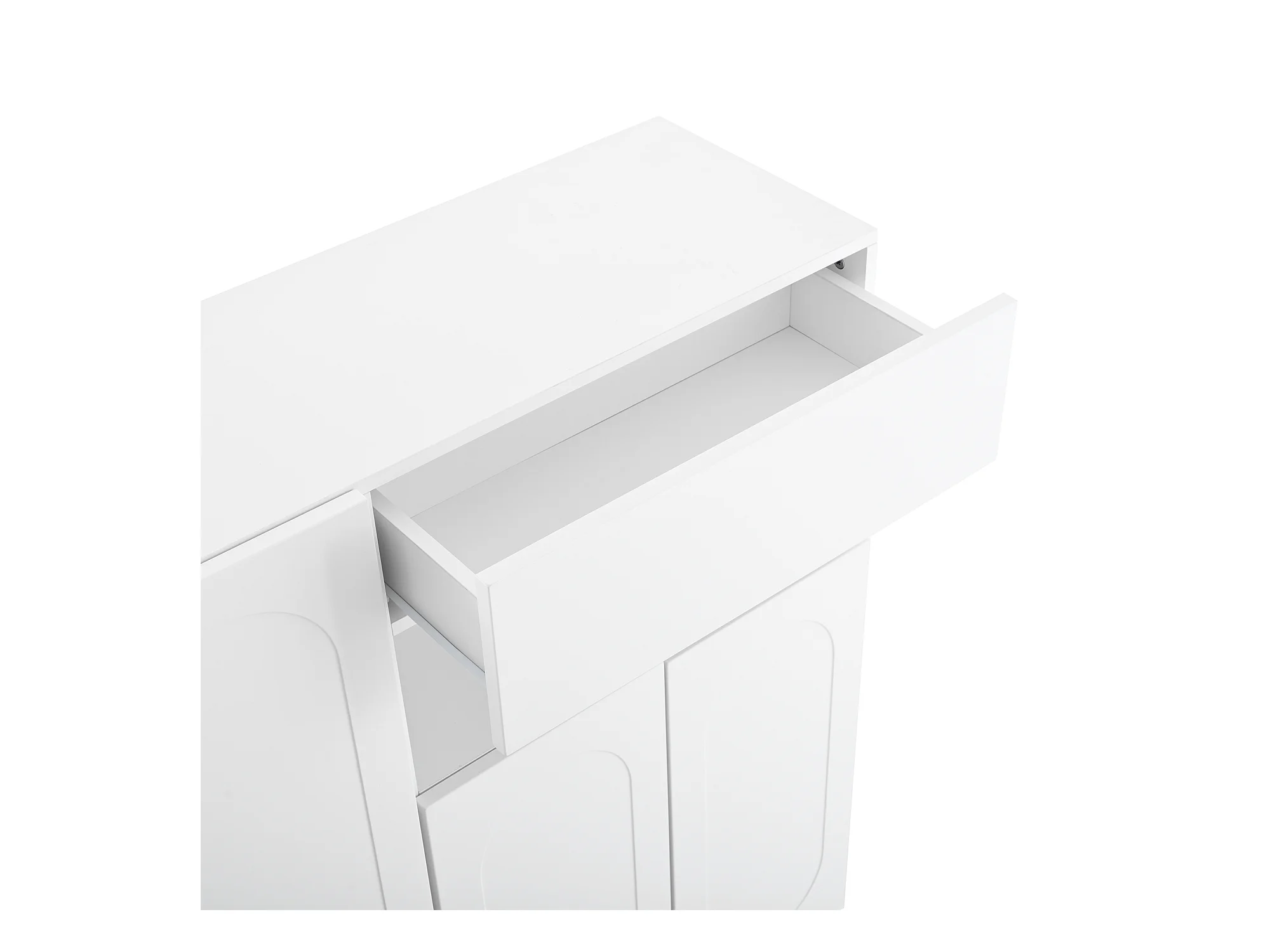 Meuble à chaussures multifonctionnelle - avec un siège rembourré - avec 4 portes et 1 tiroir - Blanc