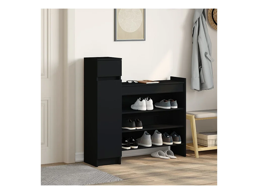 Meuble à chaussures noir 100,5x28x100 cm bois d'ingénierie FR77079