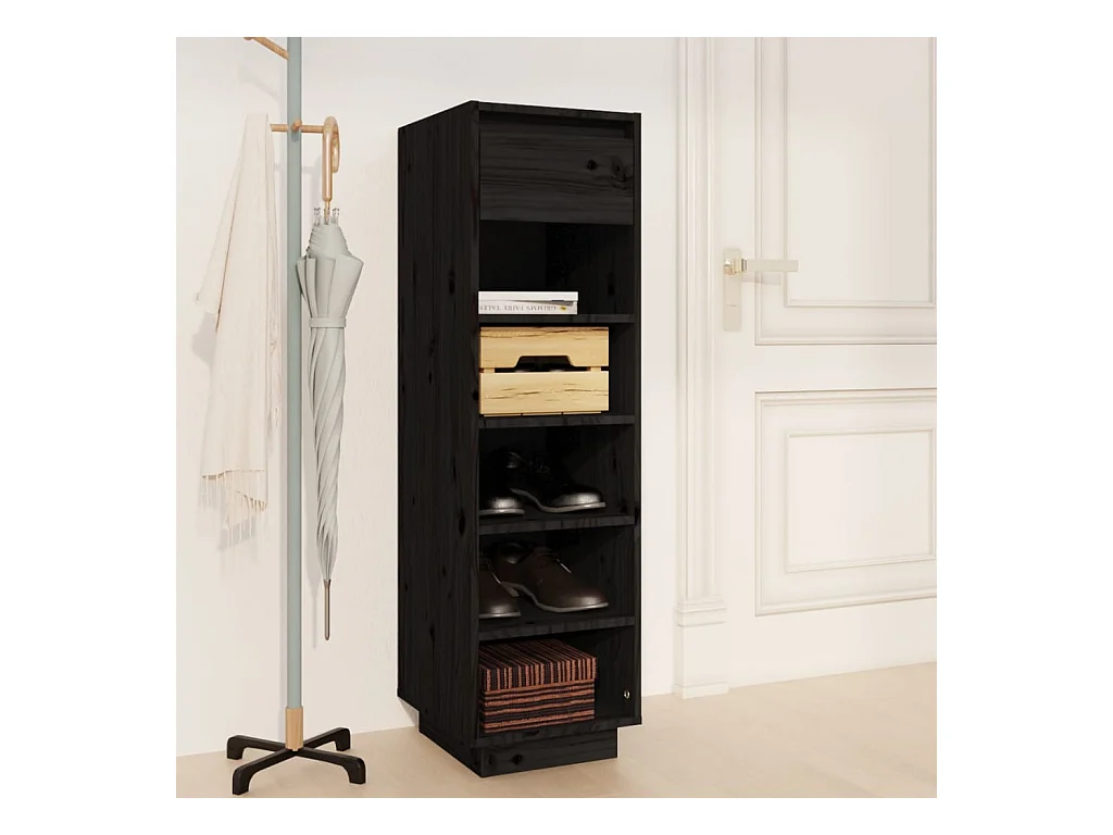 Meuble à chaussures noir 30x34x105 cm bois de pin massif FR75384