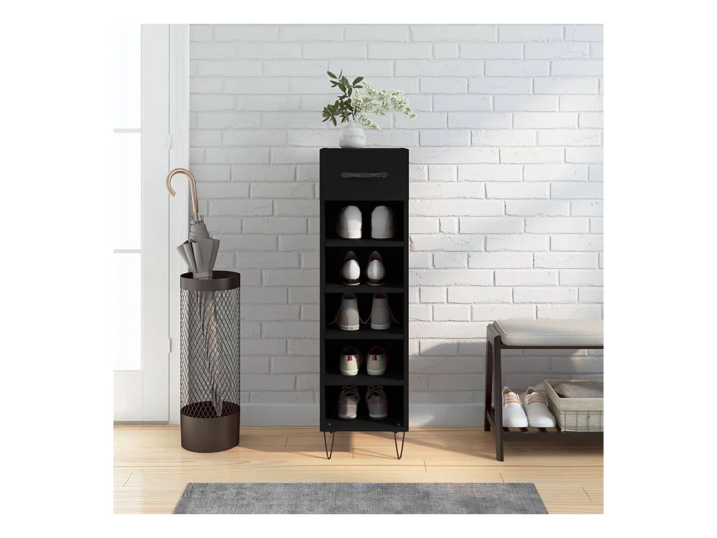 Meuble à chaussures noir 30x35x105 cm bois d'ingénierie FR13767