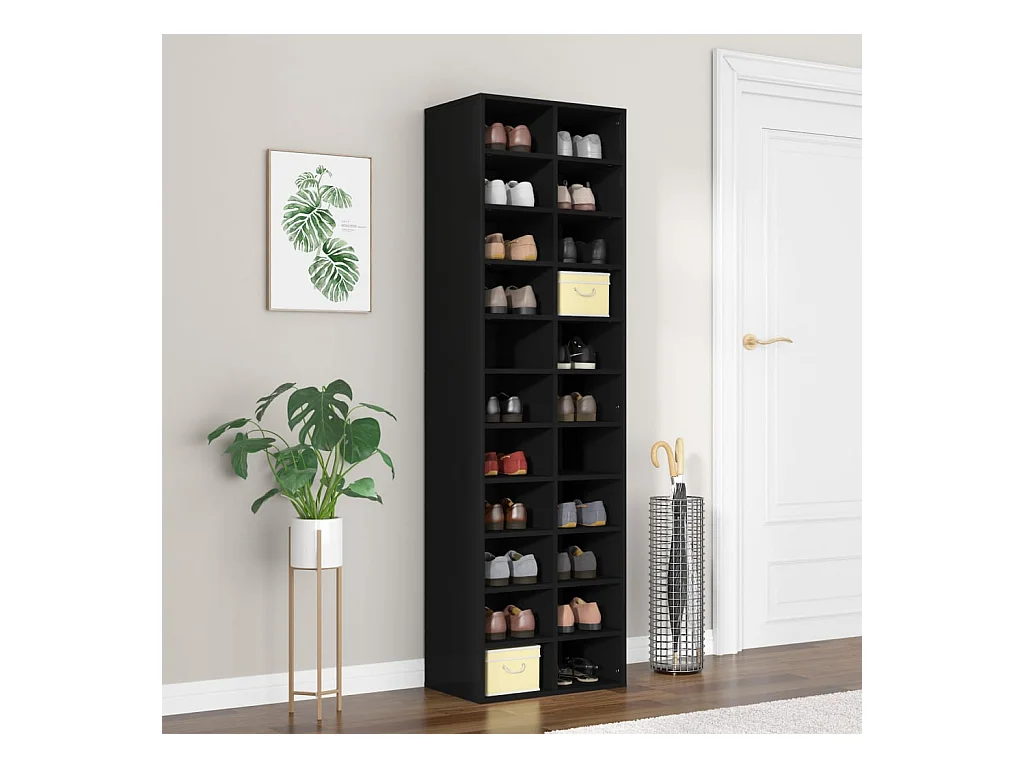 Meuble à chaussures noir 54 x 34 x 183 cm bois d'ingénierie FR53314