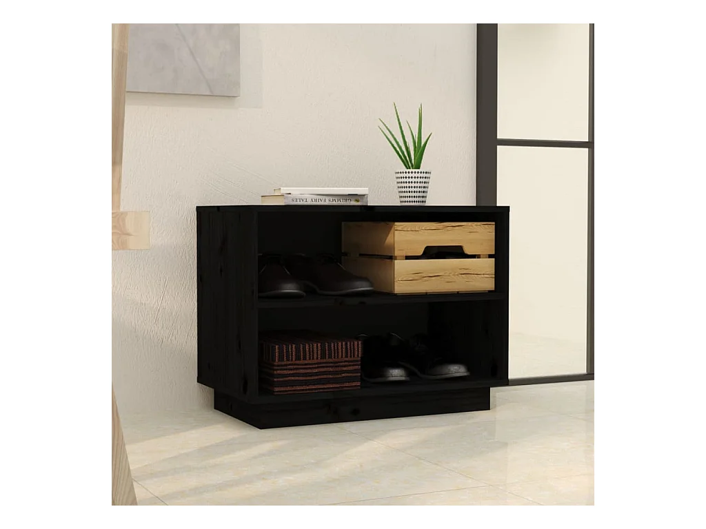 Meuble à chaussures Noir 60x34x45 cm Bois de pin massif FR43140