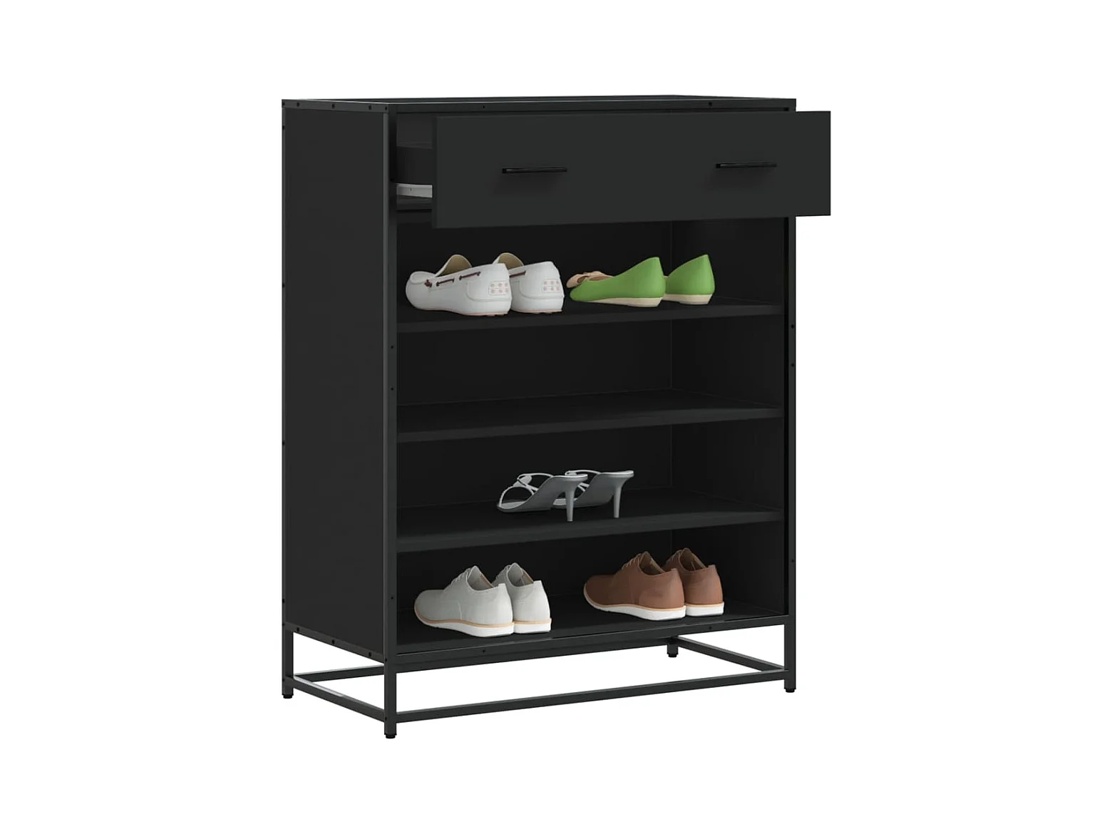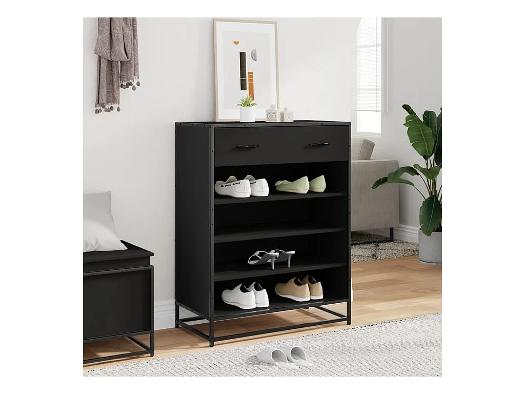 Meuble à chaussures noir 75x38x97,5 cm bois d'ingénierie métal