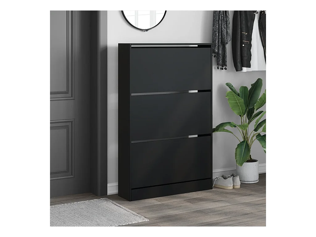 Meuble à chaussures 2 tiroirs rabattables noir 80x34x116 cm FR22889