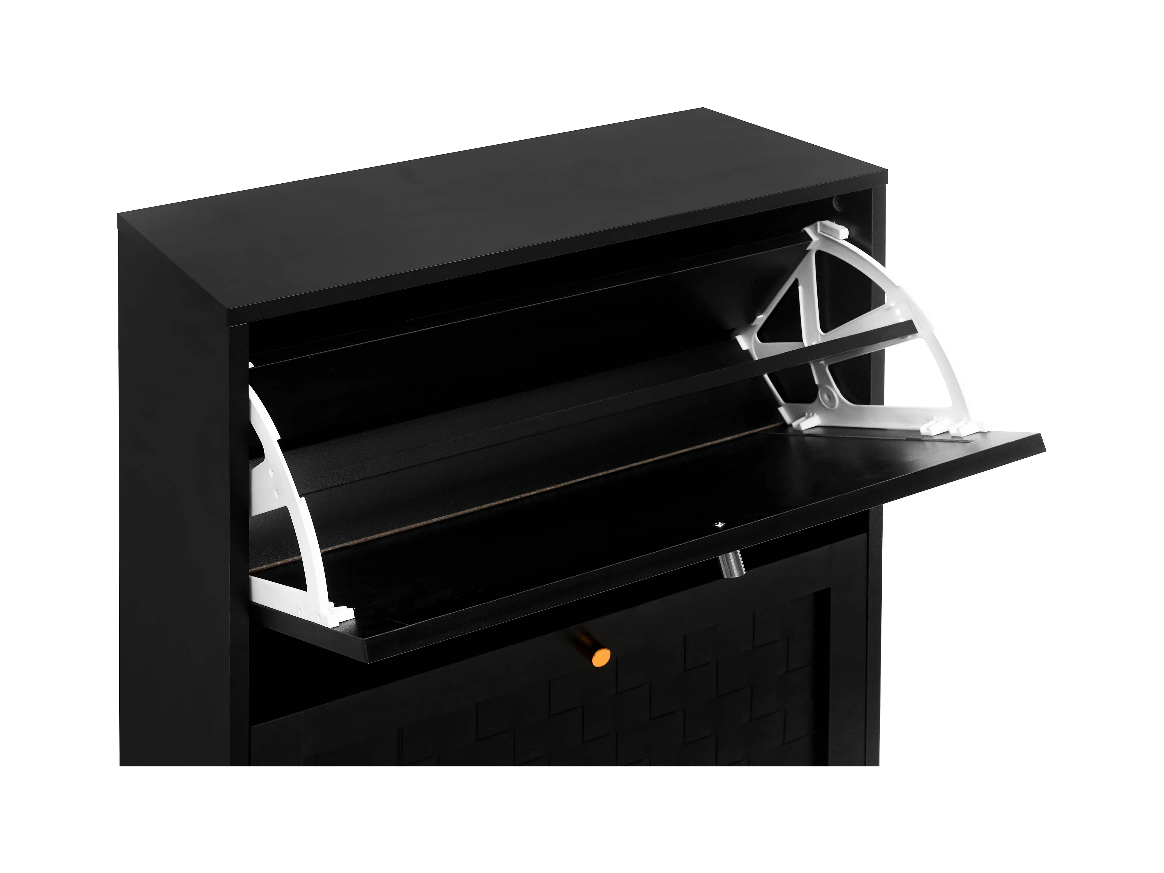 Meuble à chaussures noir avec 3 abattants, 1 tiroir et 1 porte, style moderne - pour entrée ou salon