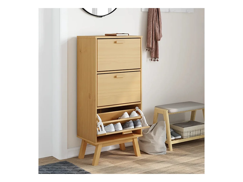 Meuble à chaussures OLDEN marron 55x35x120 cm bois pin massif FR51365