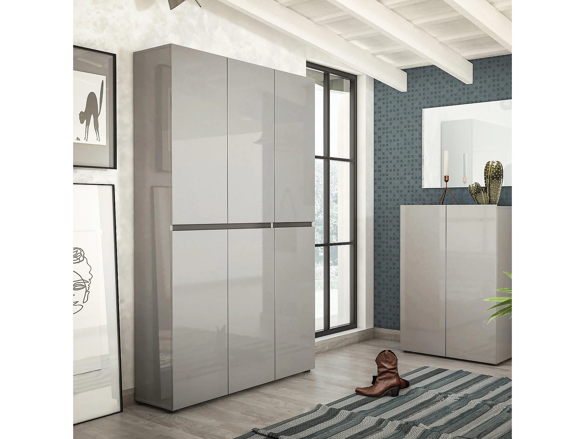 Meuble à chaussures Paarl, Meuble à chaussures, Armoire d'entrée polyvalente, Rangement pour chaussures, Made in Italy, 122x34h200 cm, Gris