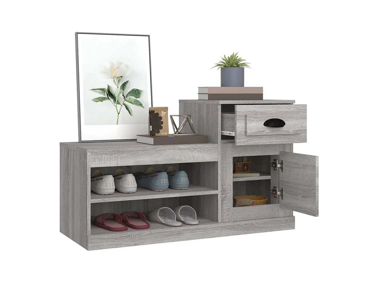 Meuble à chaussures sonoma gris 100x42x60 cm bois d'ingénierie FR25351