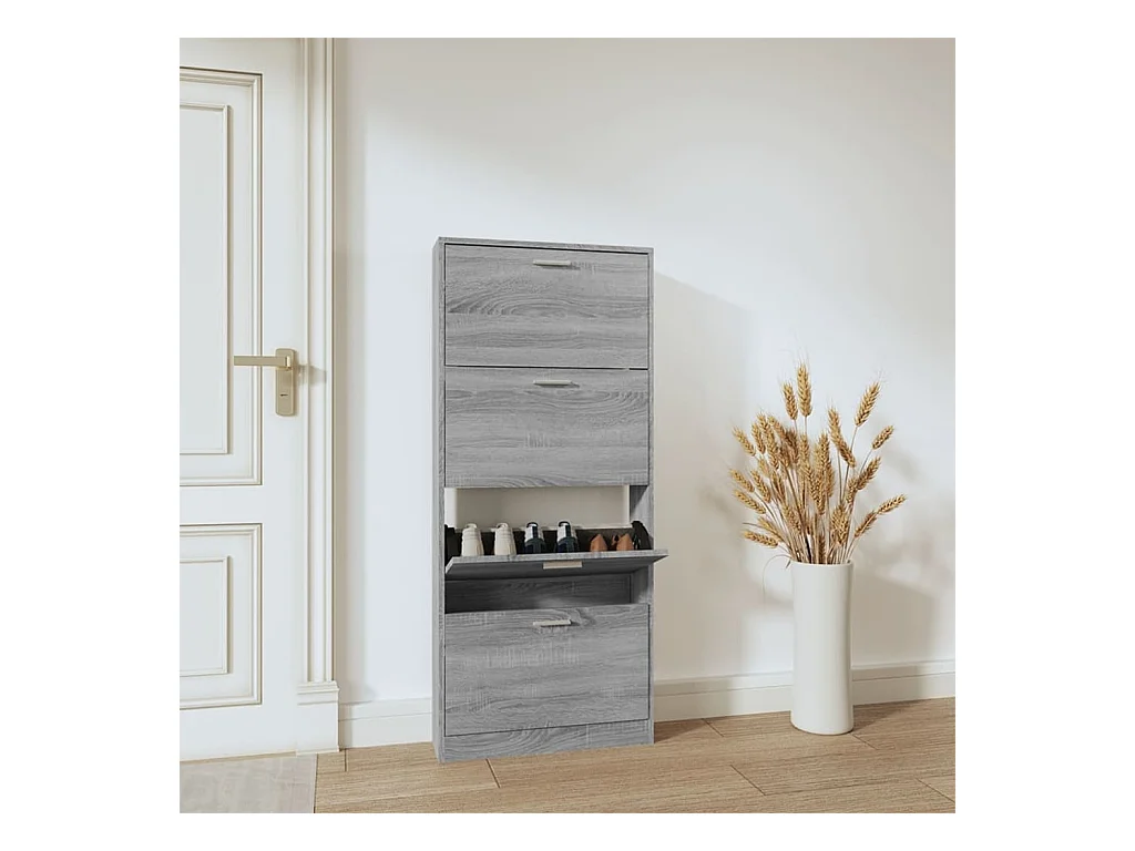 Meuble à chaussures 2 tiroirs rabattables sonoma gris FR65657