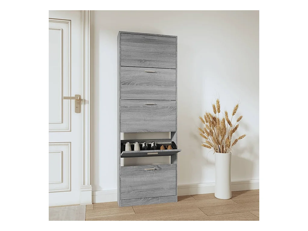 Meuble à chaussures Sonoma gris 59x17x108 cm Bois d'ingénierie FR74103