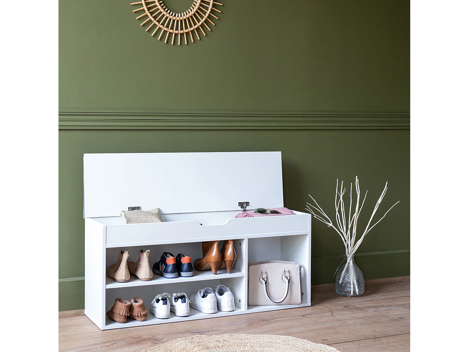 Meuble à chaussures trois casiers avec coffre blanc ALAN