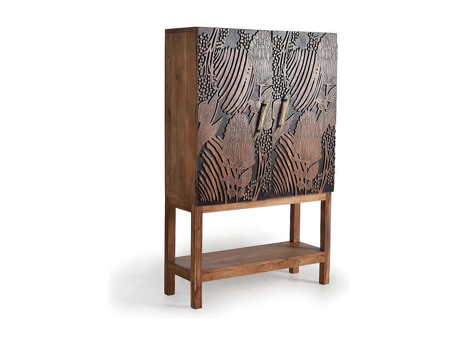 Armoire à bouteilles en bois d'acacia sculptée a main