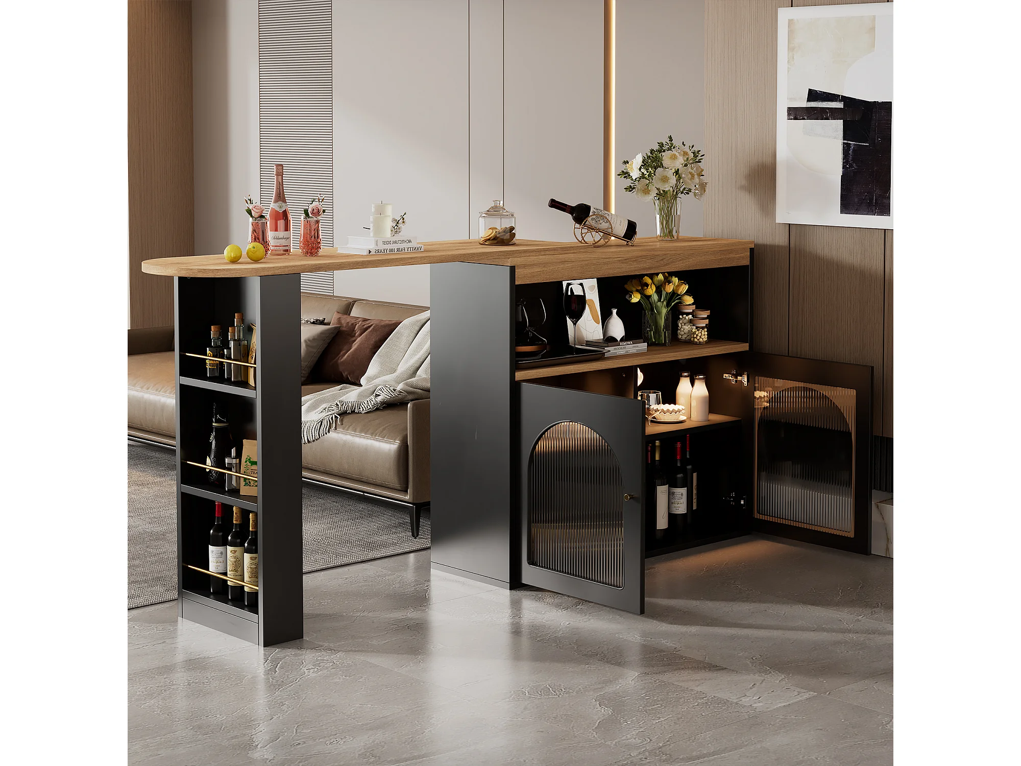 Table de bar 138x39x105 cm, extensible, pivotante à 360°, rangement 3 niveaux, MDF, noir