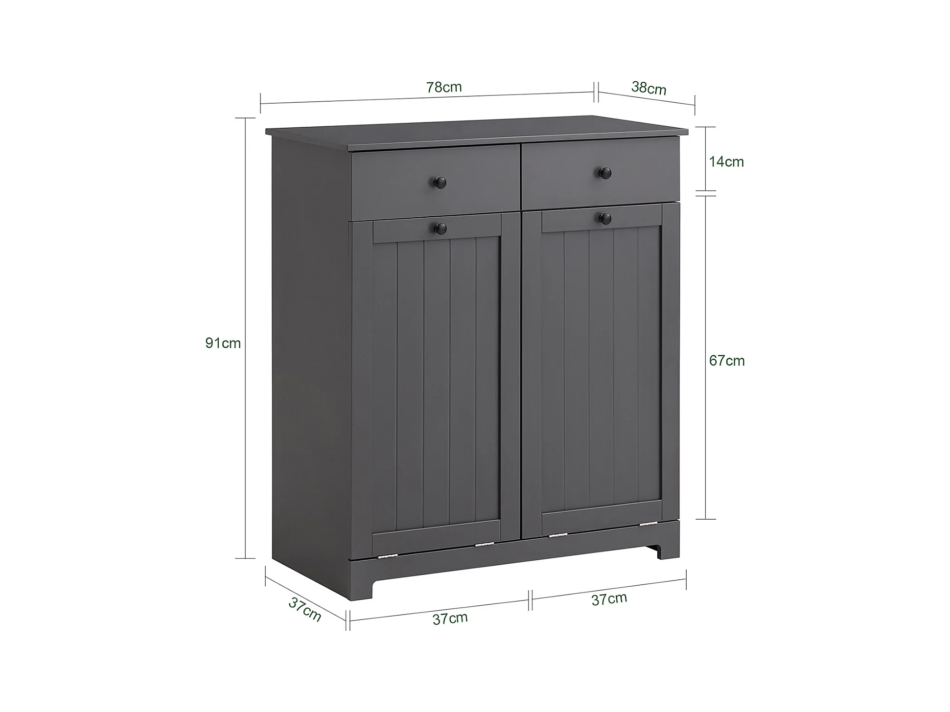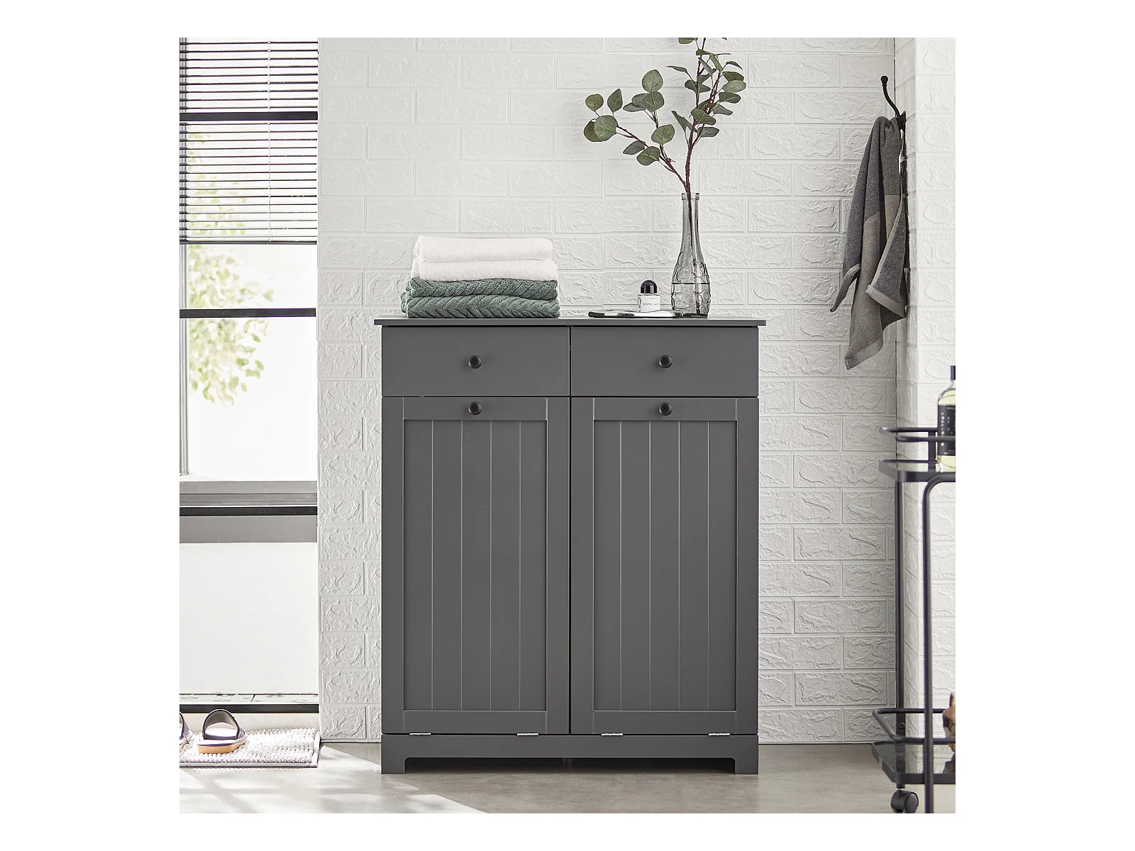 Meuble Bas de Salle de Bain Armoire Toilette avec 2 Tiroirs et 2 Paniers à Linge, BZR33-DG