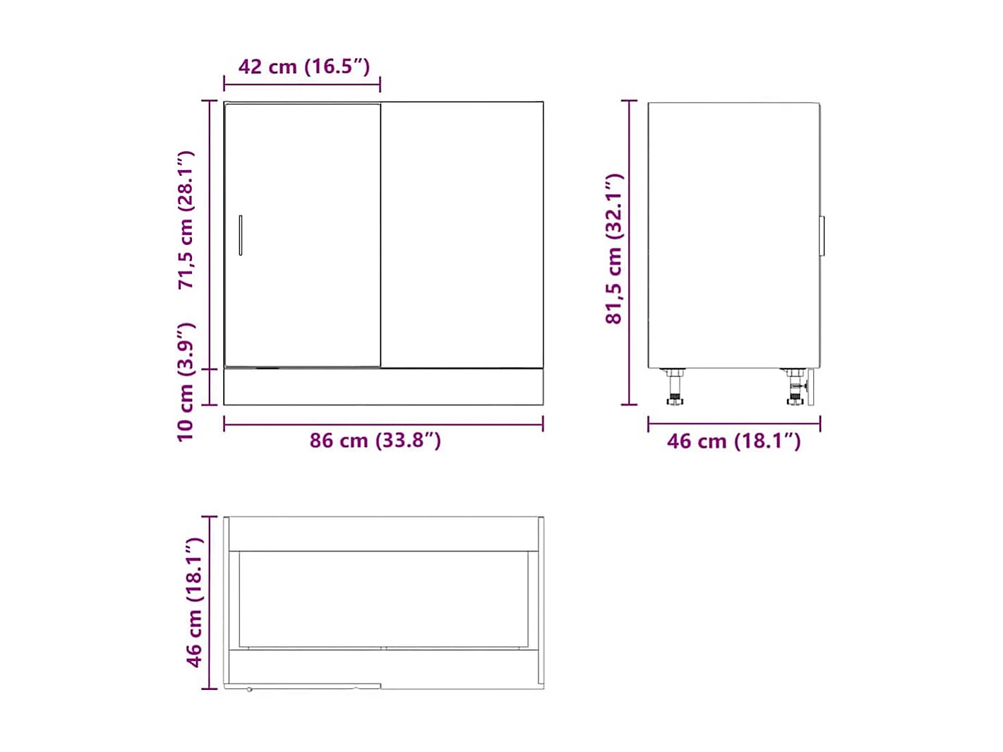 Meuble sous évier "Lyon" Gris béton Bois d'ingénierie