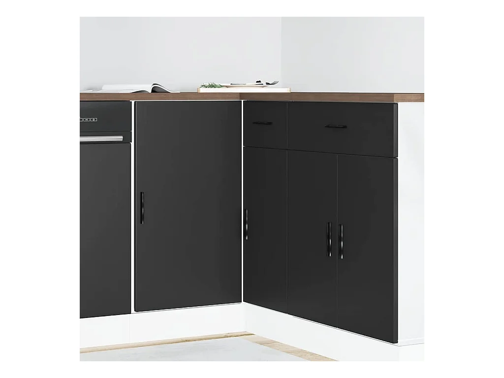 Armoire de cuisine Kalmar noir bois d'ingénierie