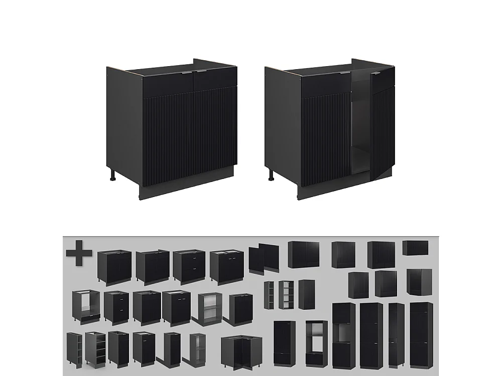 Meuble bas sous-évier noir rayé 80x60x82 fame-line