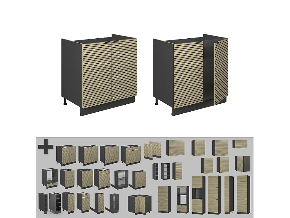 Meuble bas sous-évier panneau en chêne 80x60x82 fame-line