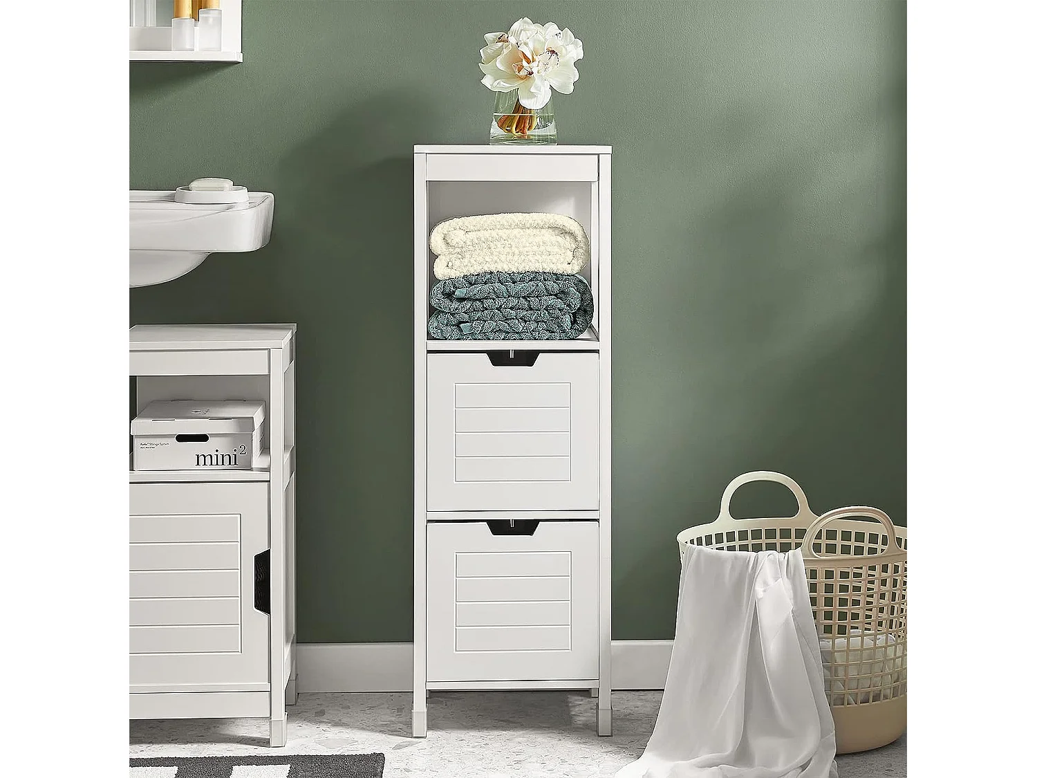 Meuble Colonne Meuble Bas de Salle de Bain Armoire Toilette – 1 étage et 2 tiroirs, FRG127-W