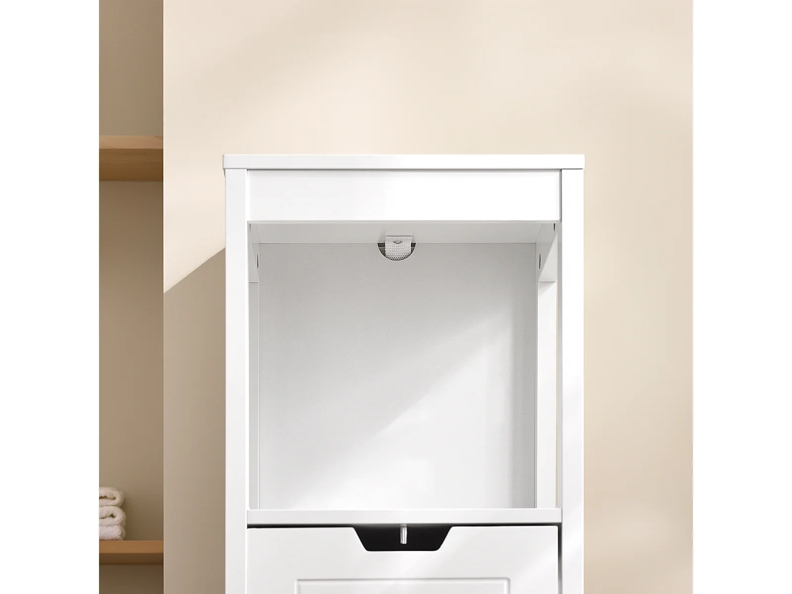 Meuble Colonne de Salle de Bain Armoire Toilette haute 4 étagères et 2 tiroirs Blanc, FRG126-W