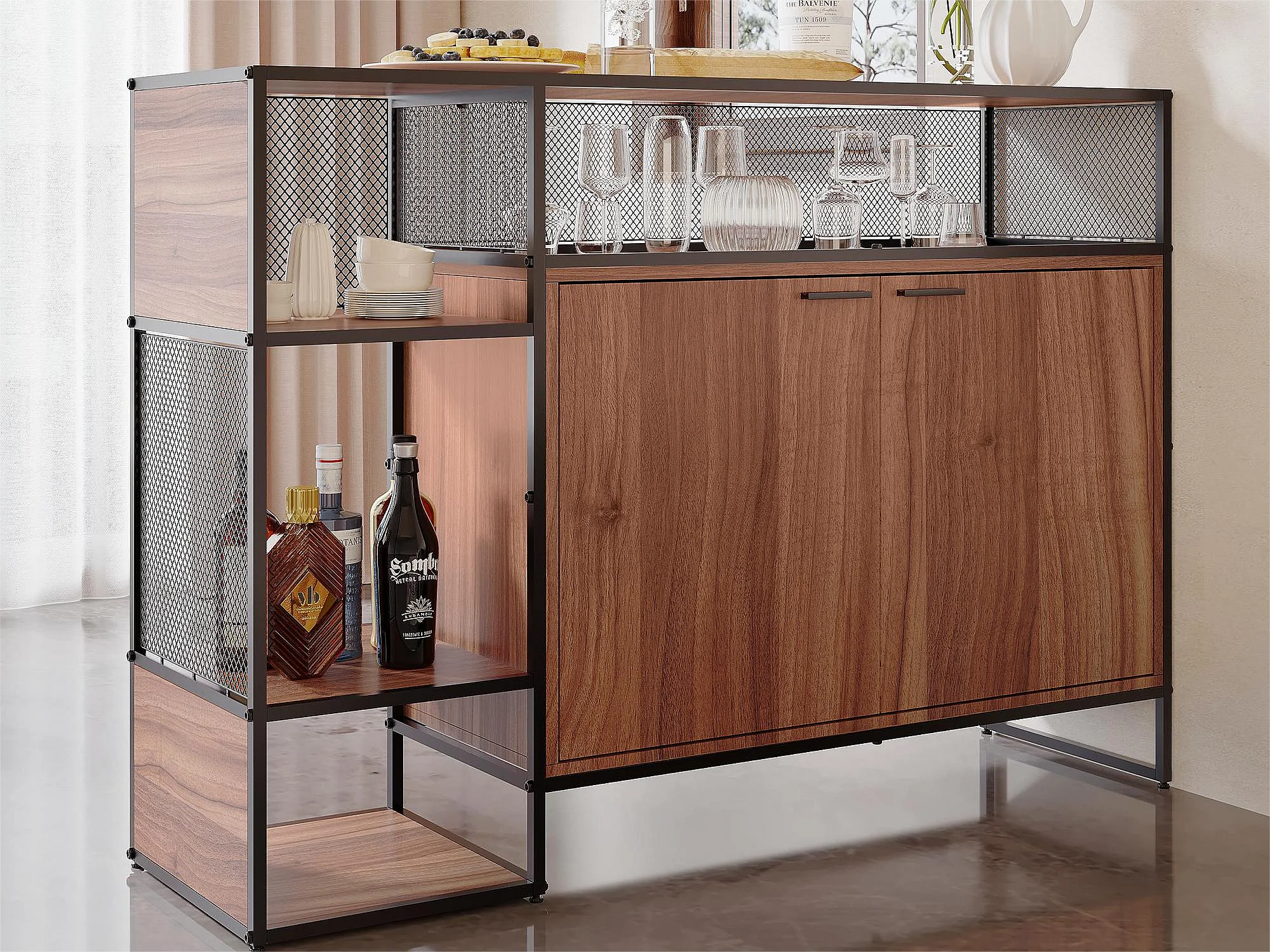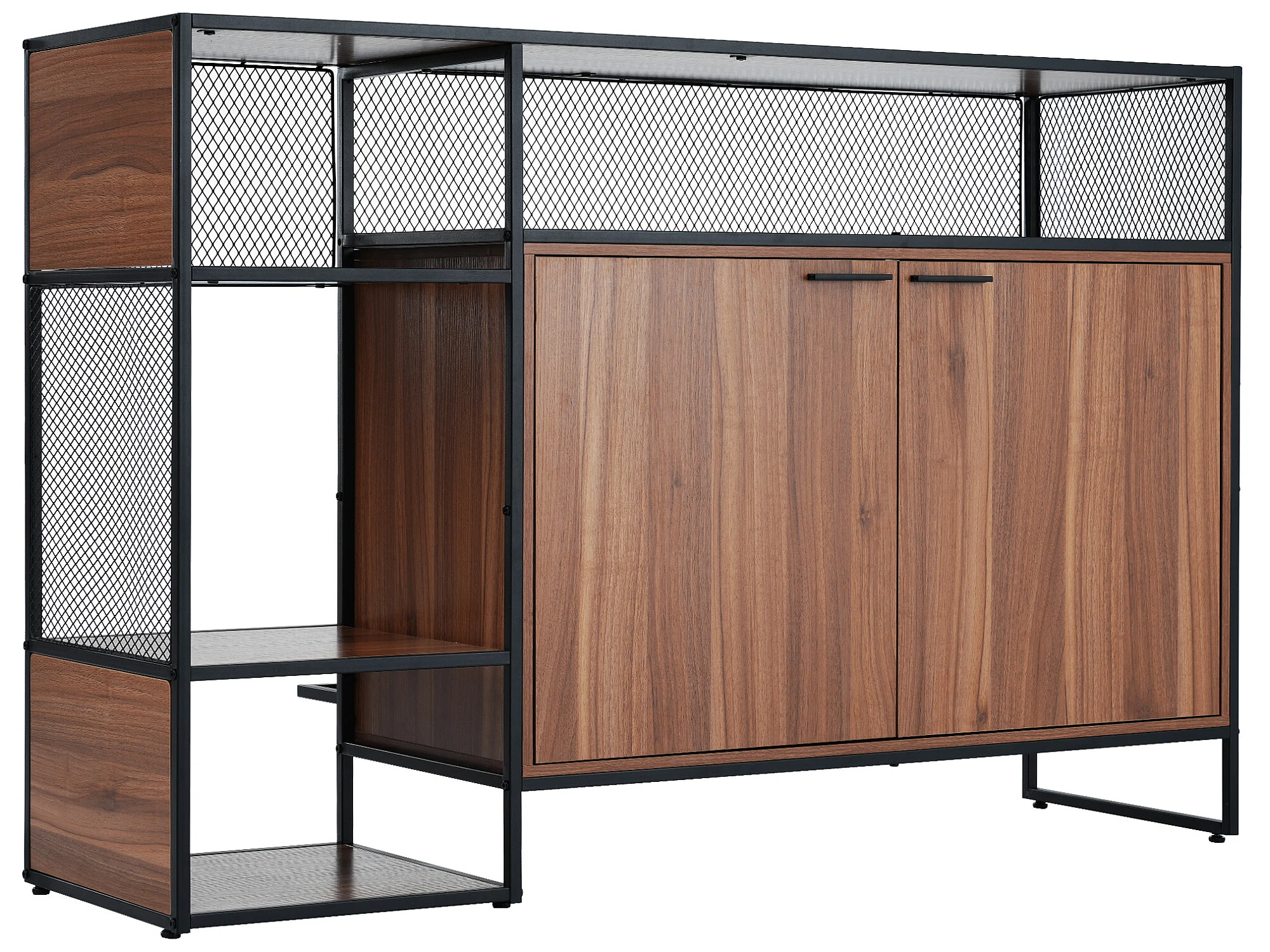 Meuble de bar, buffet bas - 2 portes et 4 niches - MDF - style industriel - coloris: marron et noir