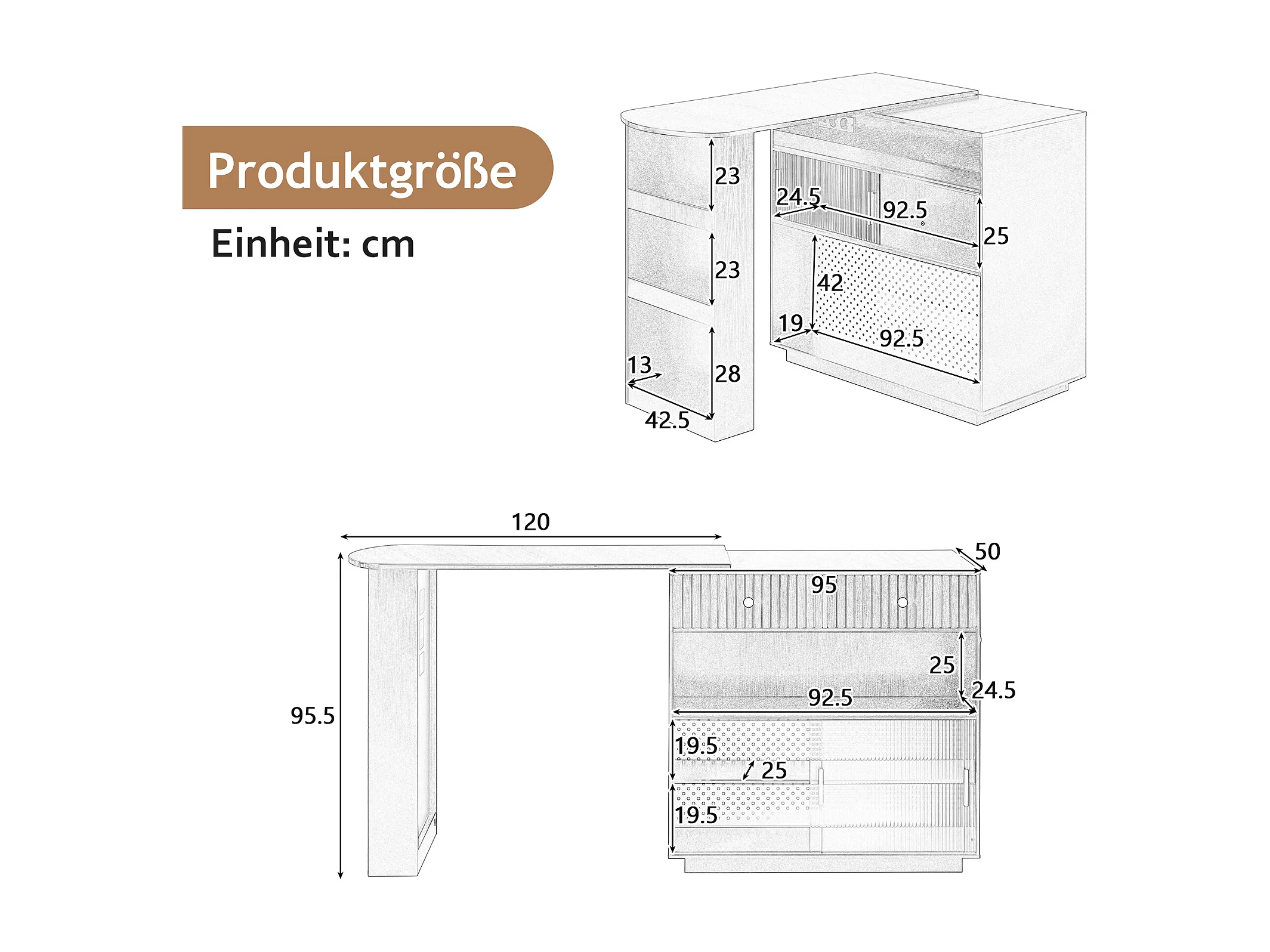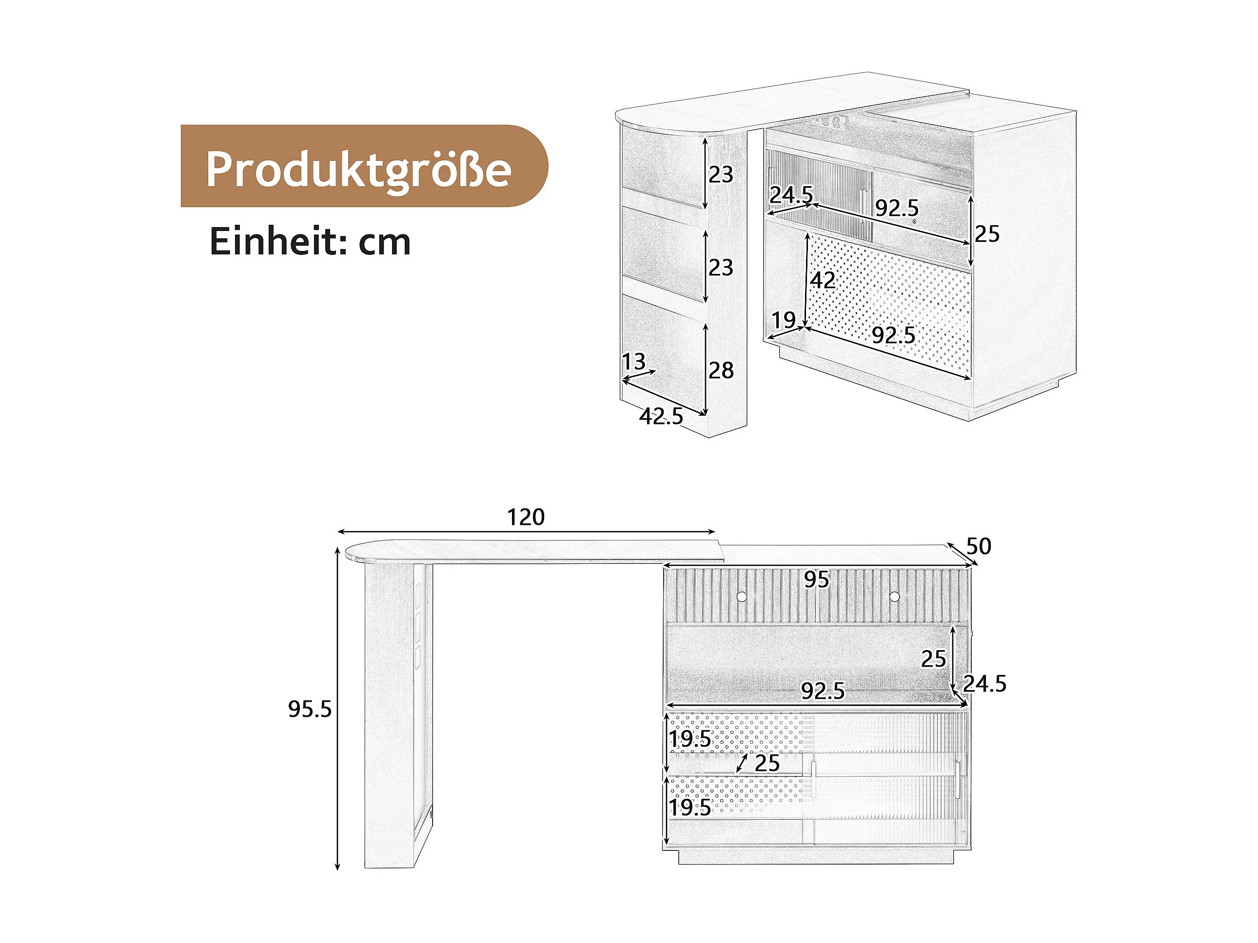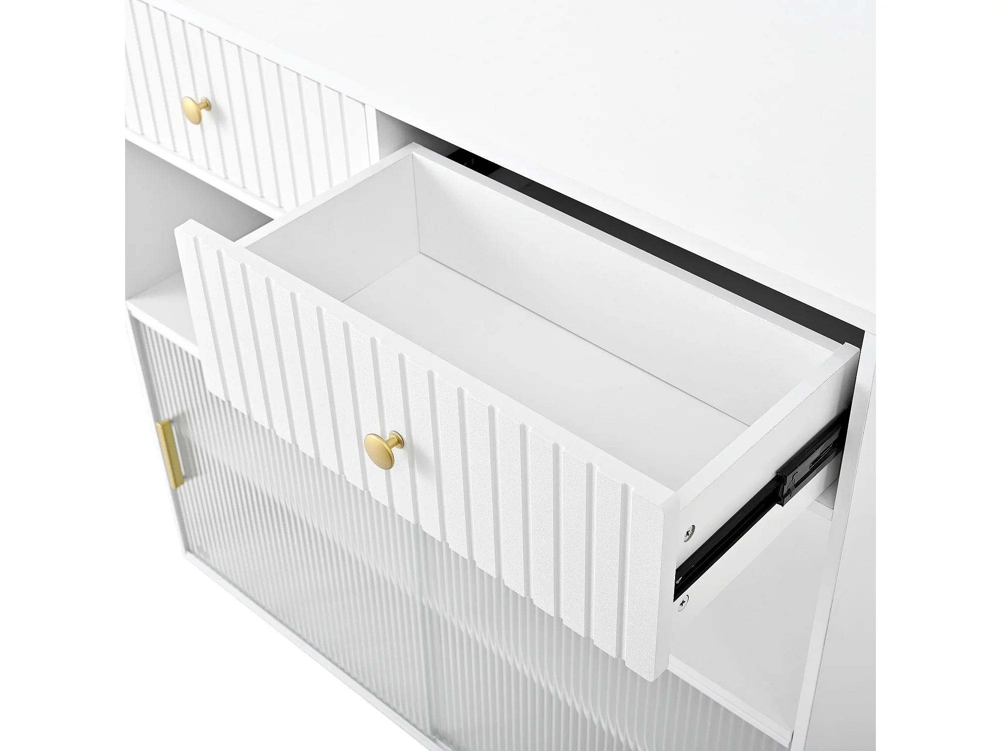 Meuble de bar de cuisine extensible - et rotation à 360° - avec prise - avec espace de rangement et éclairage LED - avec étagères latérales - Blanc