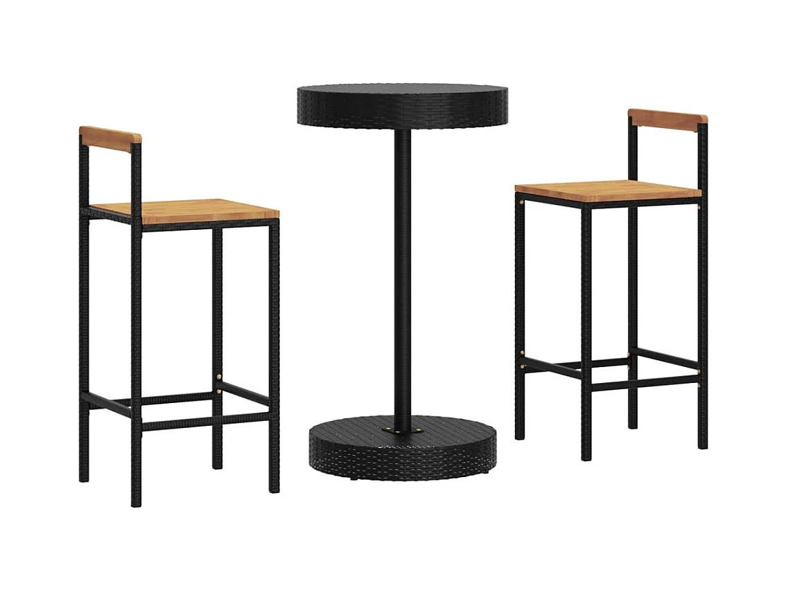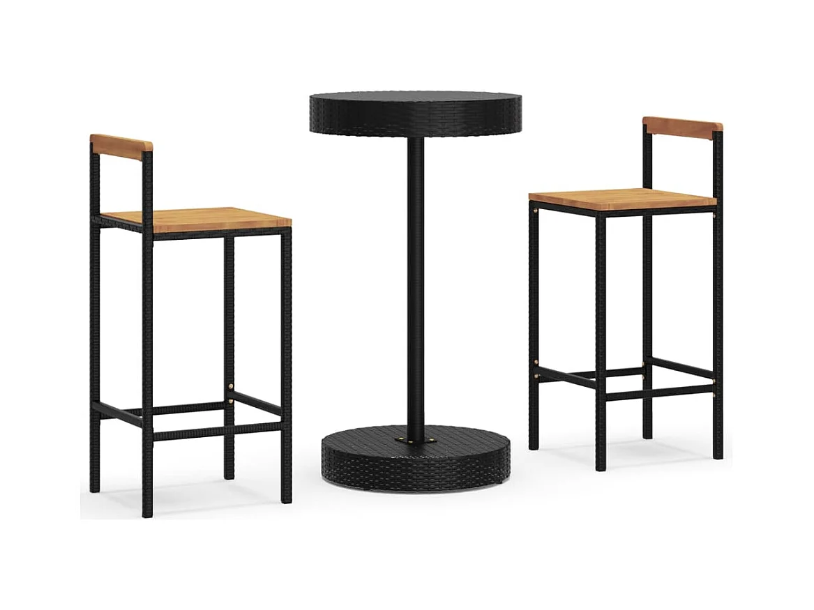 Tammisaari Ensemble de bar jardin 3 pcs noir poly rotin/bois massif acacia
