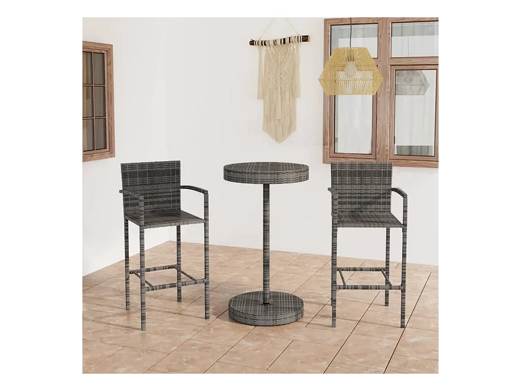 Meuble de bar de jardin 3 pcs Résine tressée Gris FR78571
