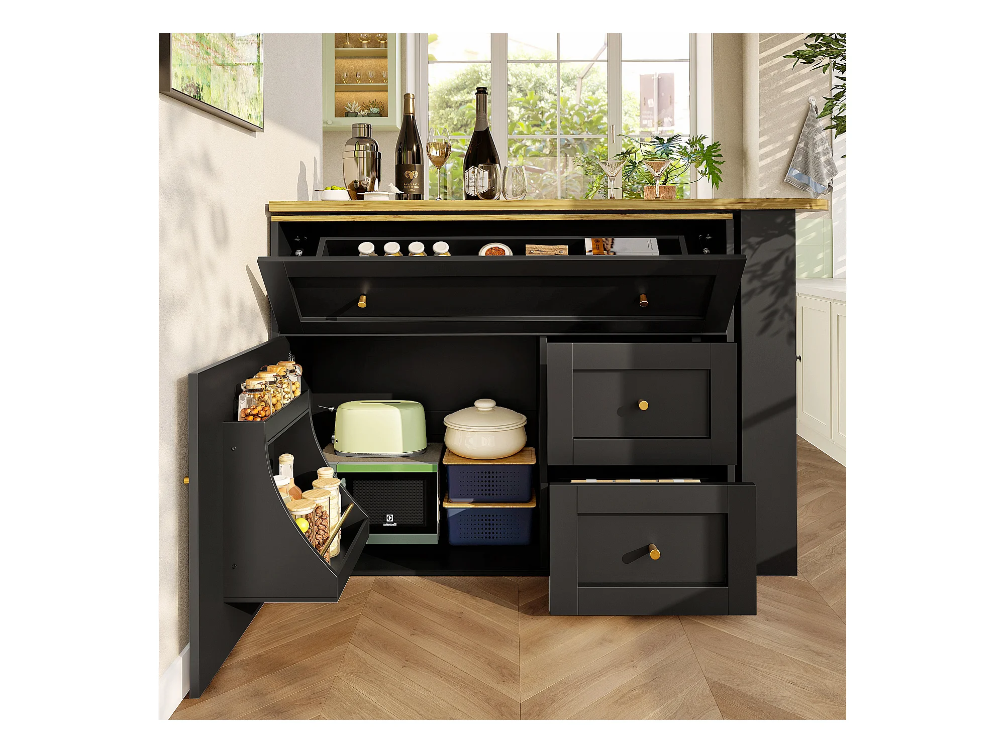 Buffet,Meuble de bar pivotant et escamotable - 2 tiroirs et 6 compartiments - Noir