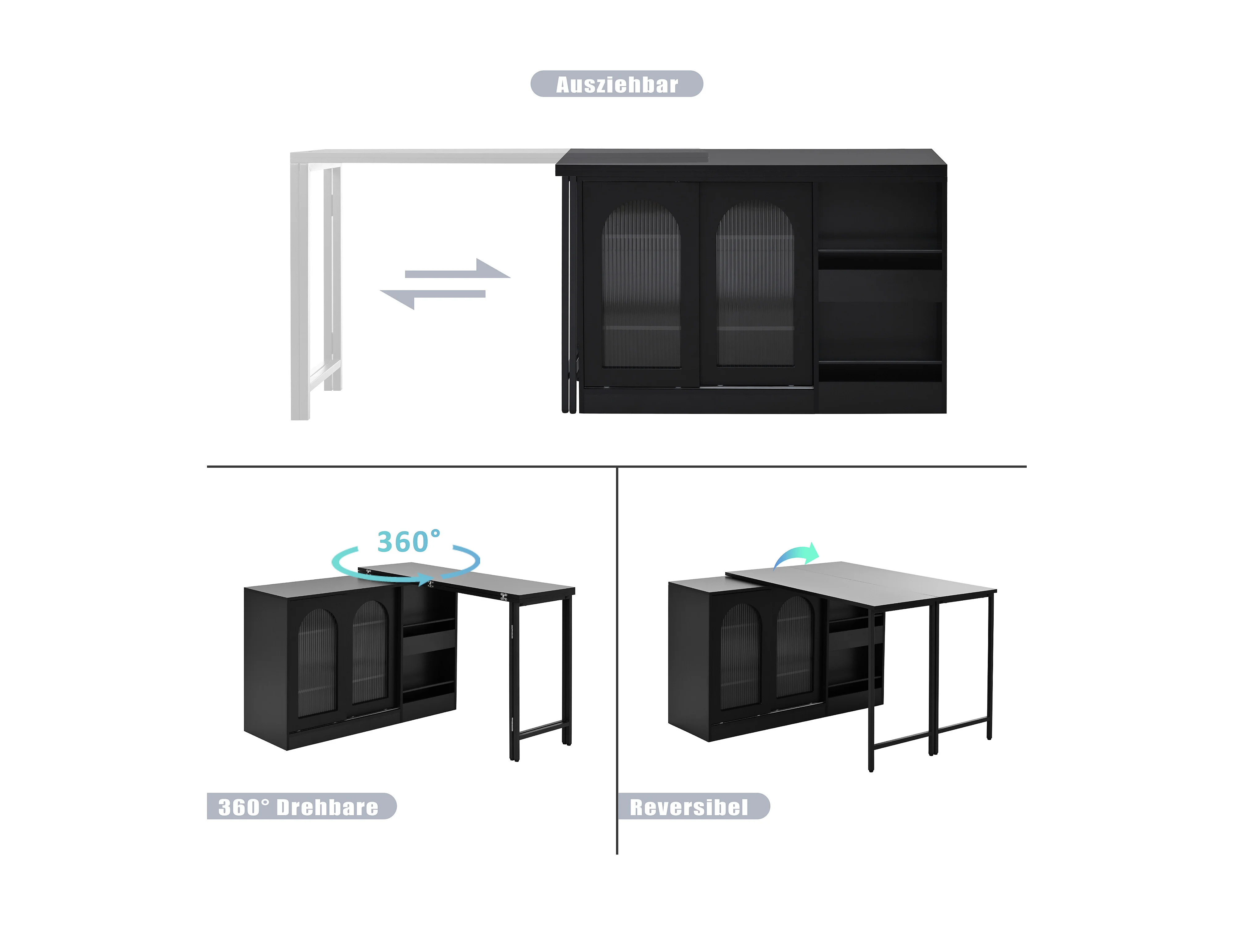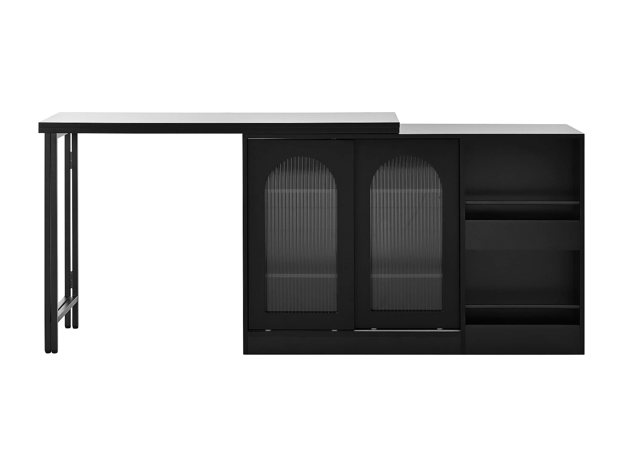 Meuble de bar pivotante avec 2 portes vitrée - Plateau réversible - Noir