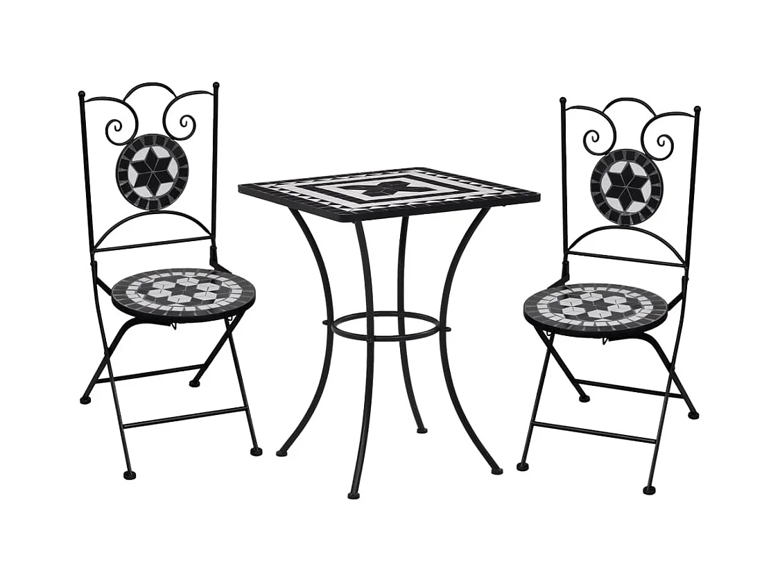 Meuble de bistro mosaïque 3pcs Carreaux céramiques Noir/blanc FR32906