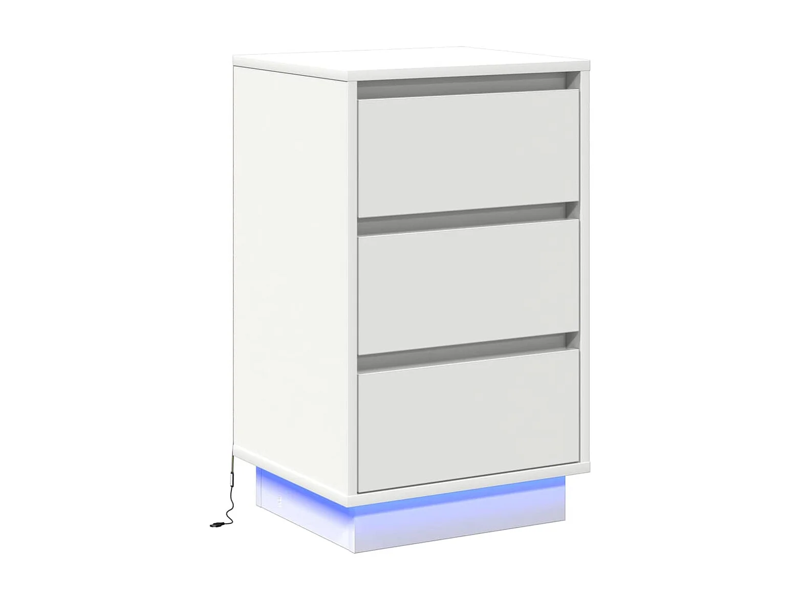 Table de chevet avec lumières LED Blanche 39x34,5x50 cm