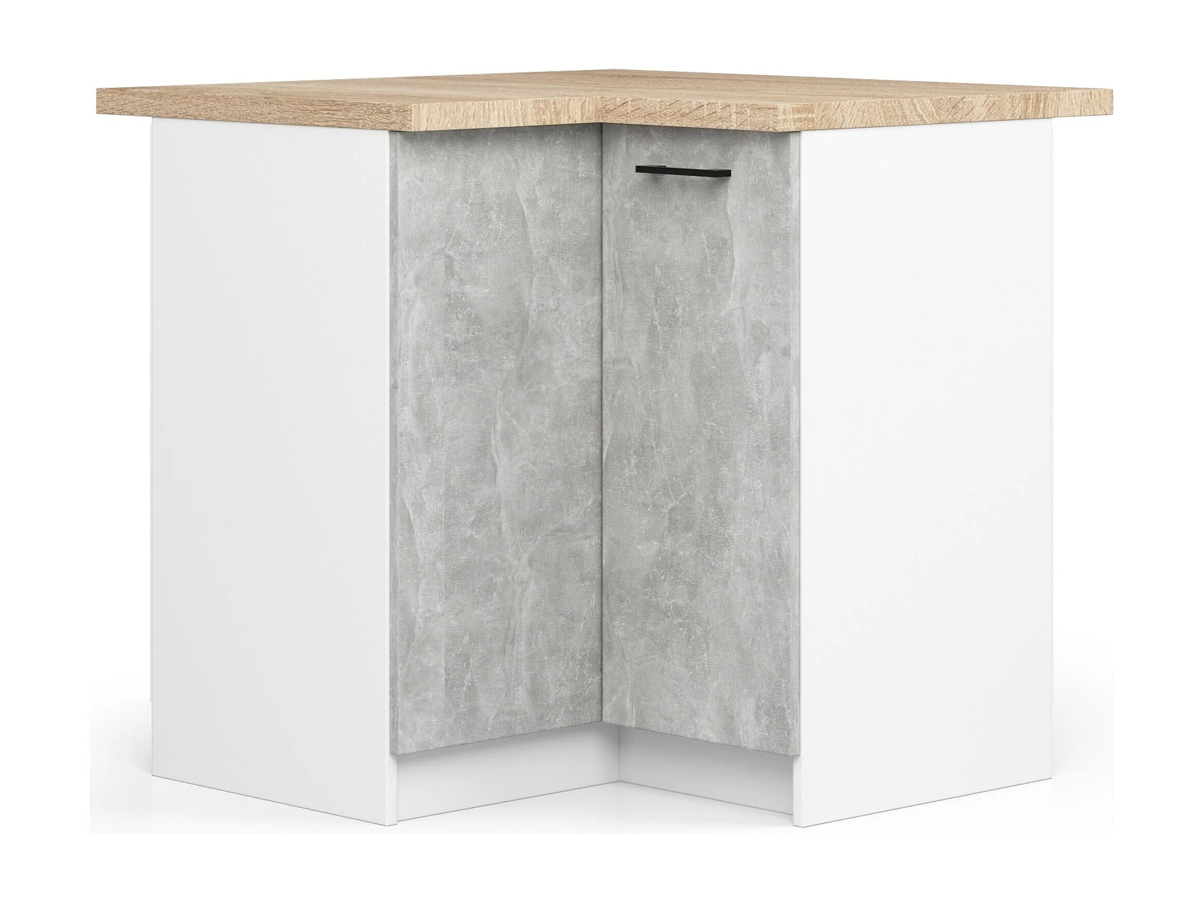 Armoires de cuisine basse AKORD S90 d'angle OLIWIA Blanc 90 cm 2 portes façade Béton 2 étagères 90x46x85 cm