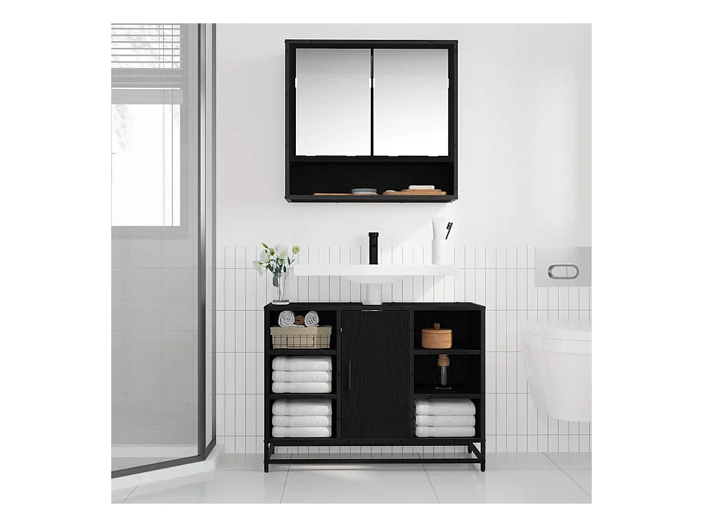 Ensemble d'armoires de salle de bain 2 pcs noir bois ingénierie