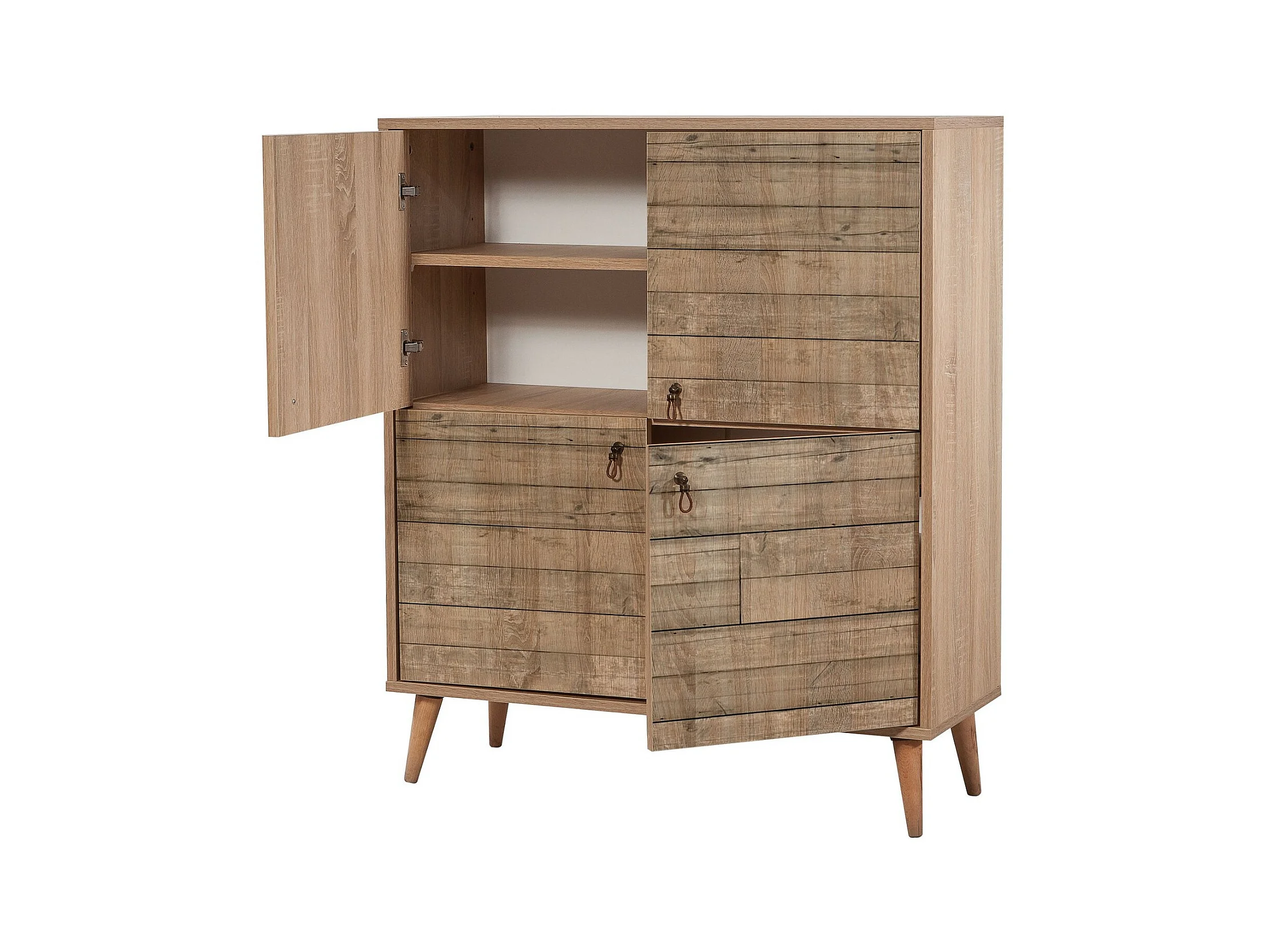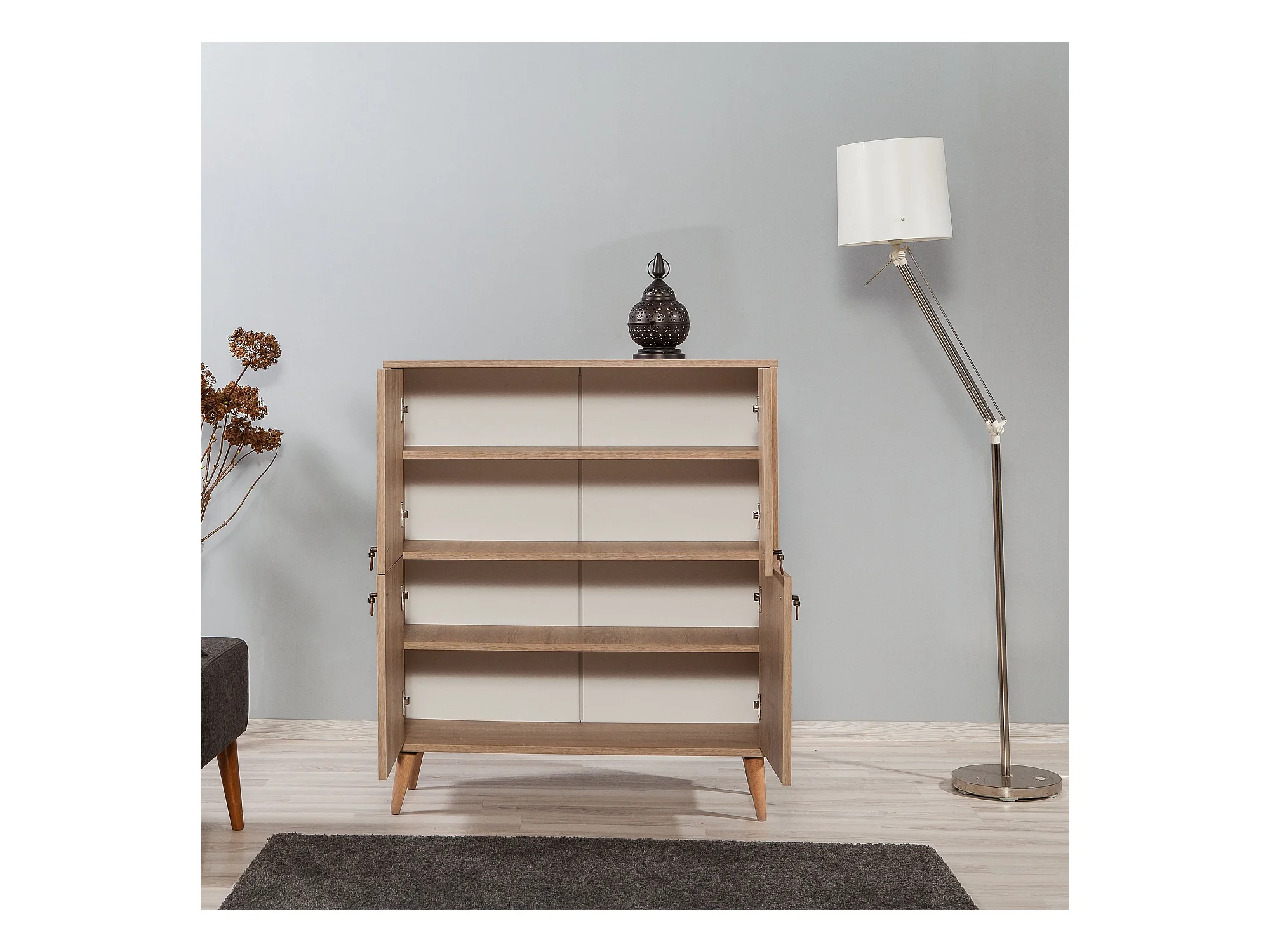 Meuble de rangement 4 portes en bois clair à lamelles Kiza 728