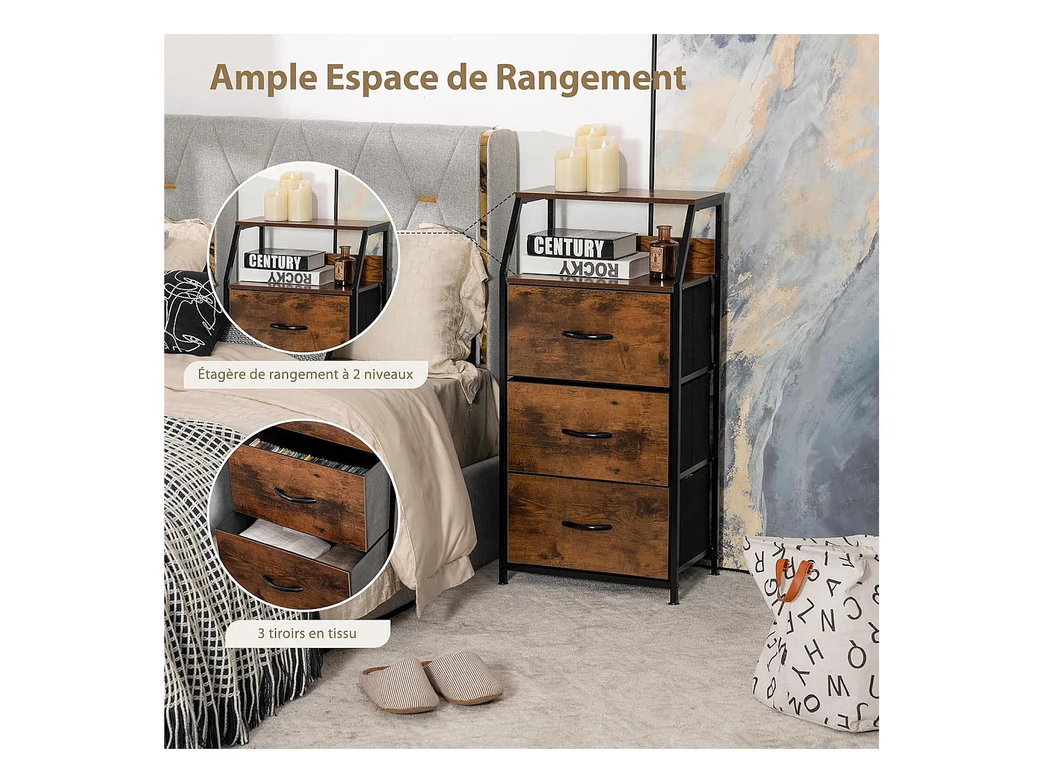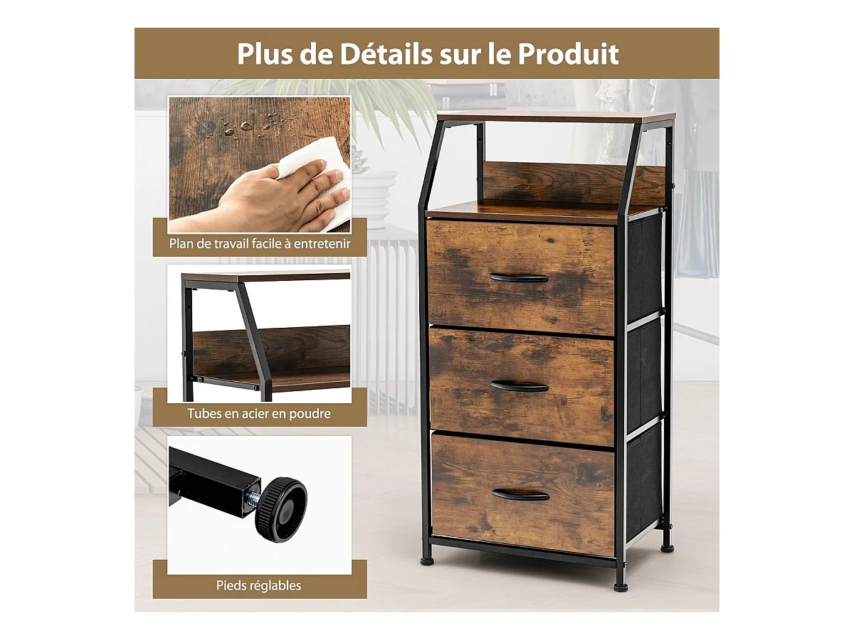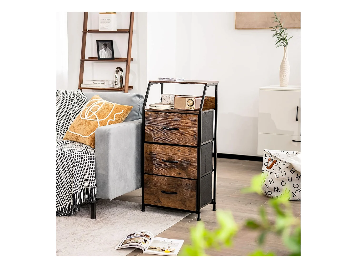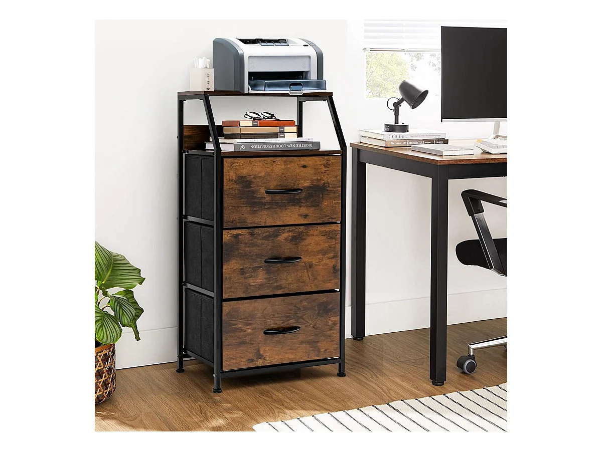 Meuble de Rangement à 3 Tiroirs, avec Étagère Supérieure et 3 Tiroirs Amovibles, Structure en Acier Massif, pour Chambre, Salon, Bureau, Marron Rustique