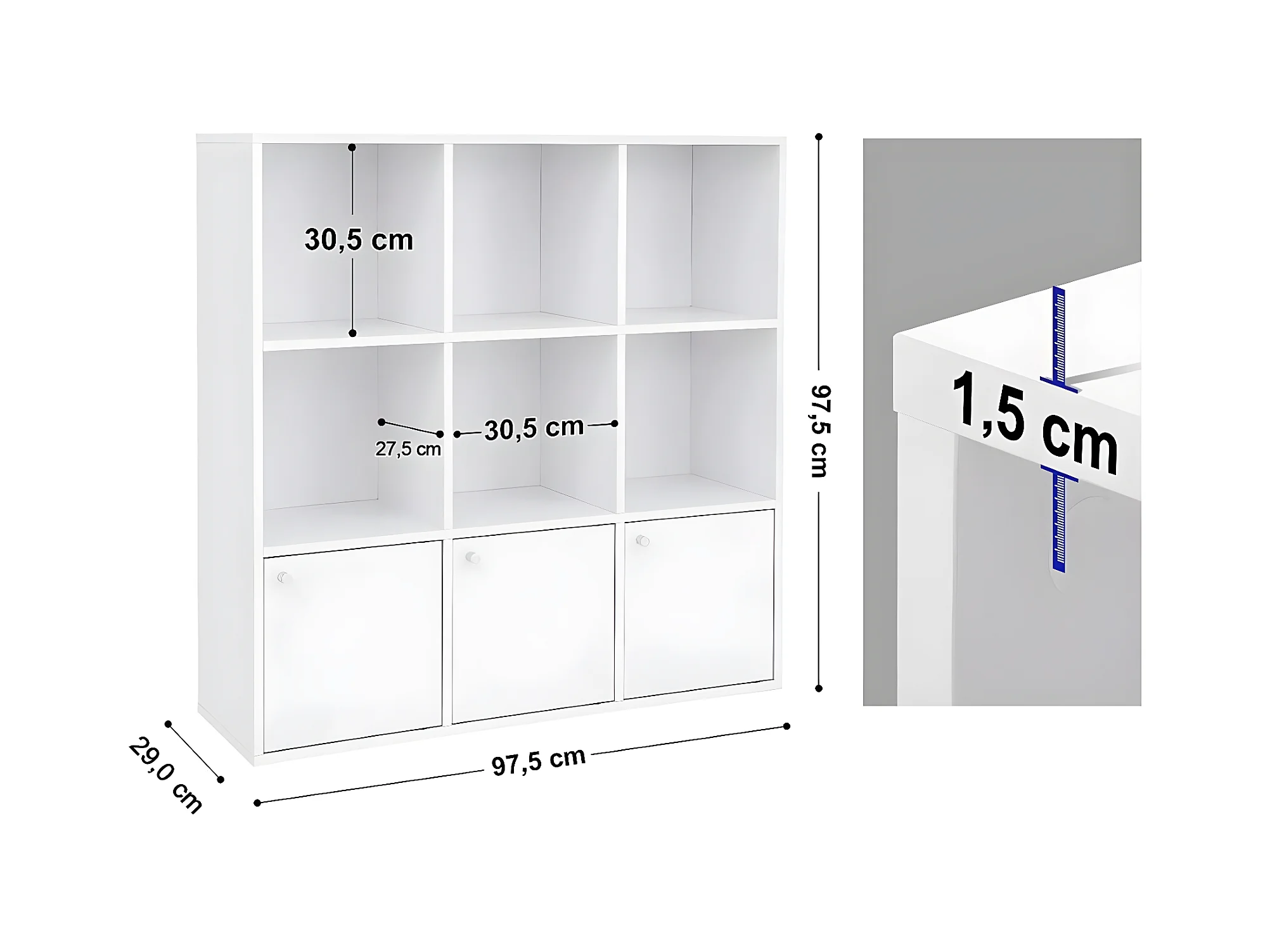 Meuble de Rangement Blanc 9 Cases avec 3 Portes - L97,5 cm