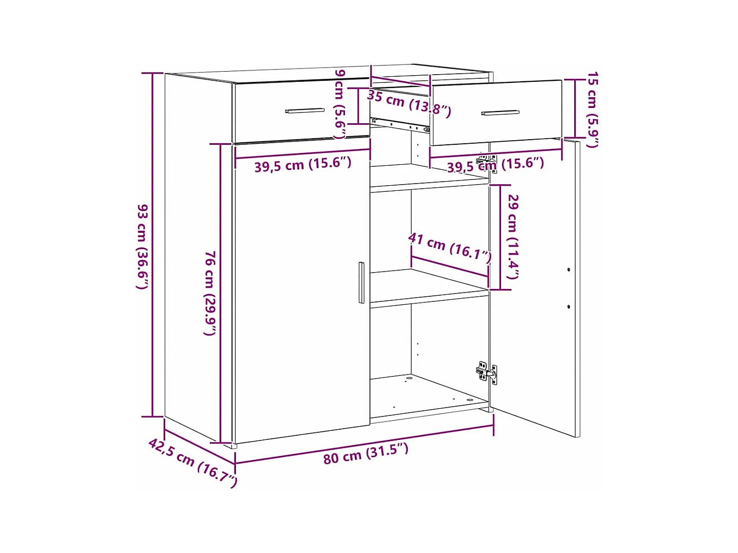 Buffet chêne sonoma 80x42,5x93 cm bois d'ingénierie