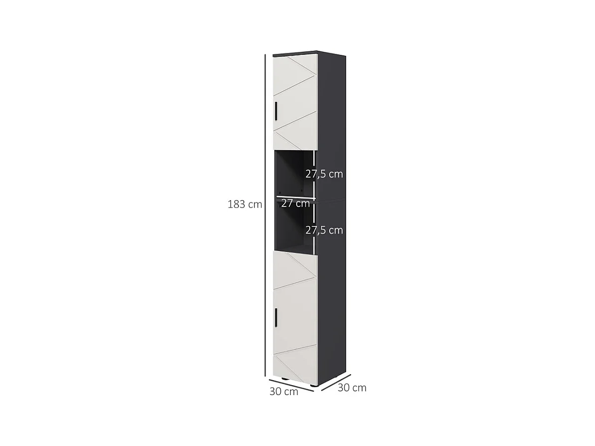 Meuble de rangement étroit avec étagères réglables, 2 compartiments ouverts, bois, gris (30x30x183 cm)