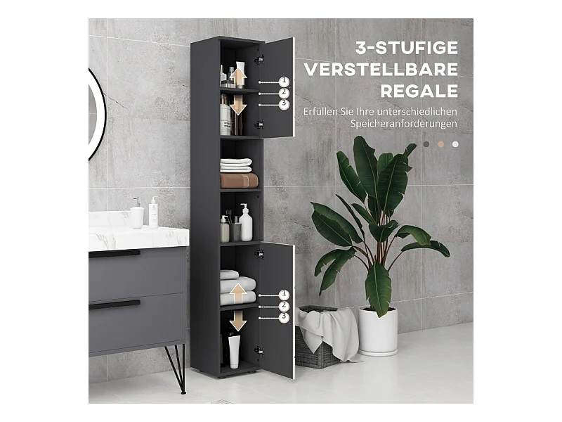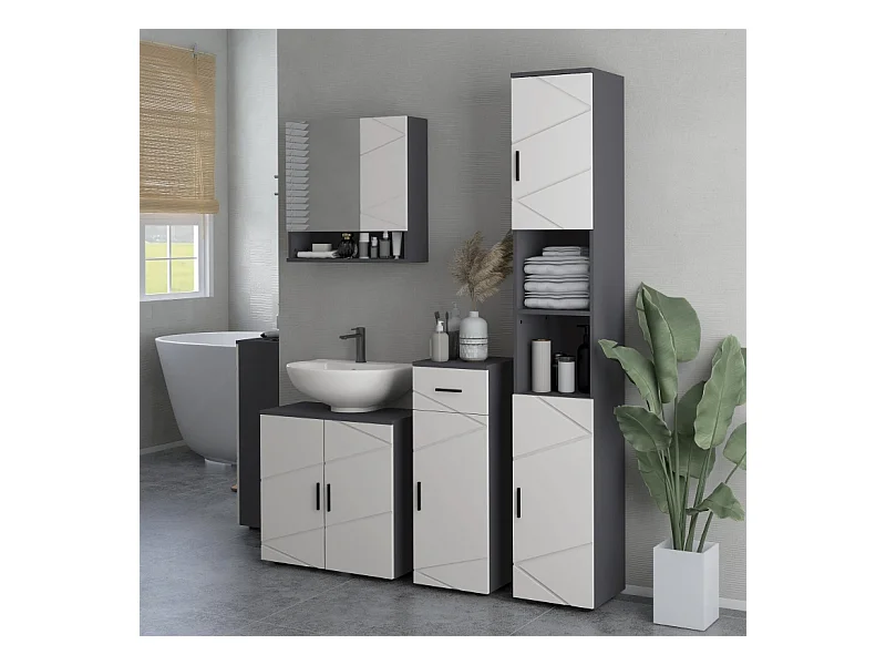 Armoire de salle de bain avec tiroir, étagères réglables, bois mélaminé, gris, compact et fonctionnel (30x30x82cm)