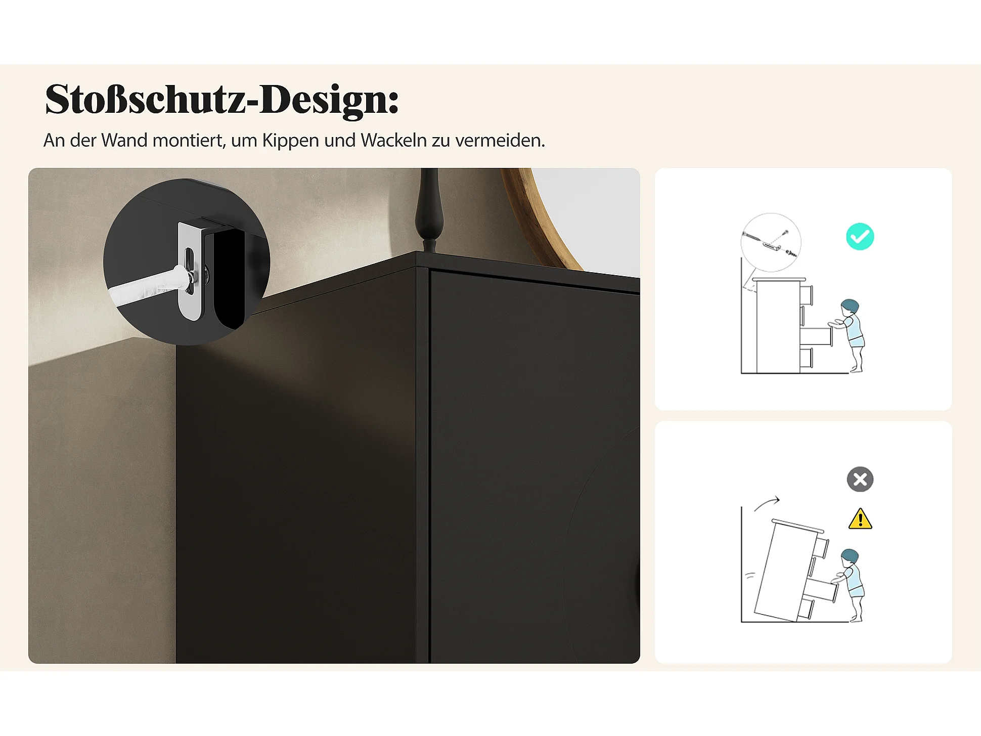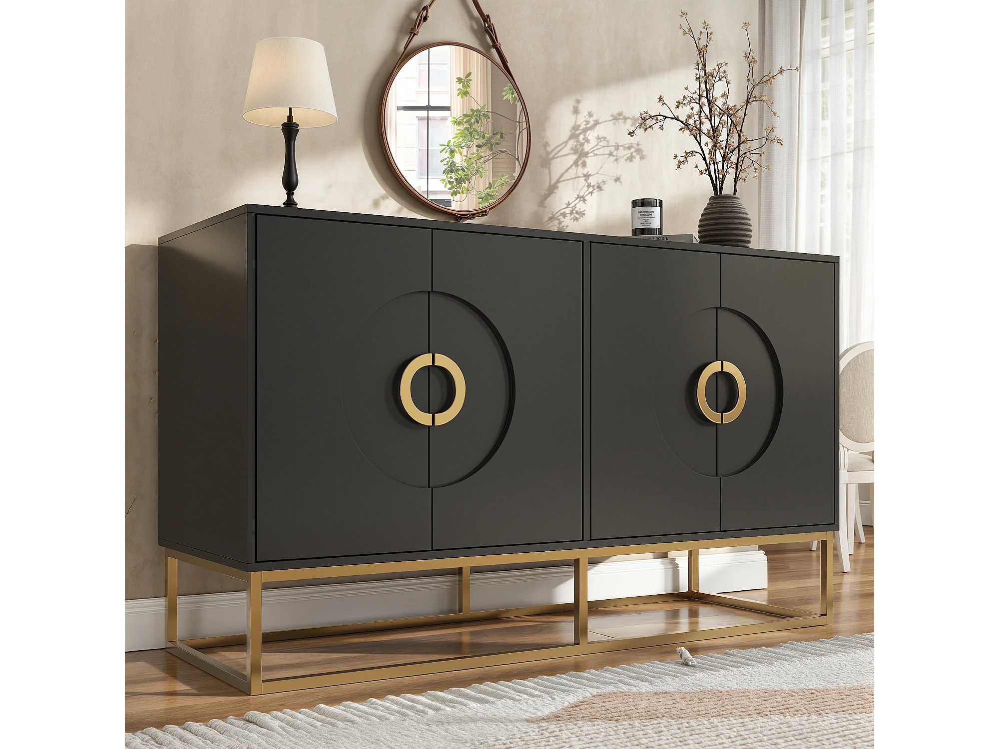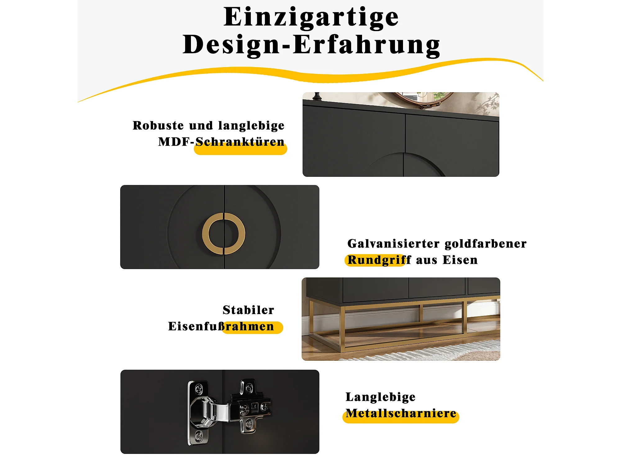 Meuble de rangement pour salle à manger, design minimaliste, MDF, noir, avec portes à anneau rond, 4 portes et 2 tiroirs (140x40x83 cm)